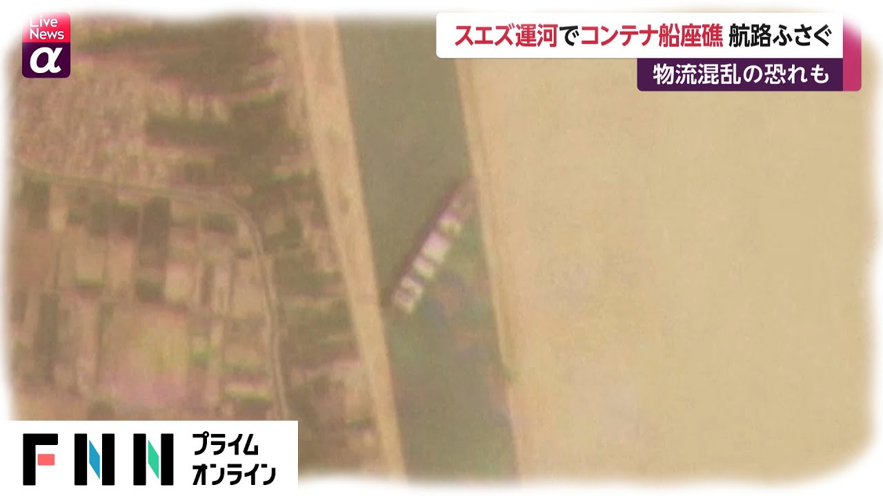 スエズ運河で23日、全長400メートルの世界最大級のコンテナ船が、運河を遮る形で座礁し、多数の船舶が、運河の途中や両側の入り口で足止めされた状態になっている。