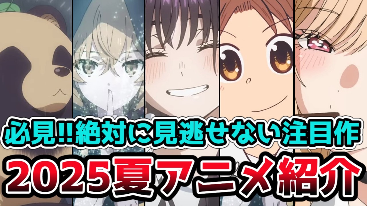 2025年夏アニメ注目タイトル一挙紹介 こんにちはとまです春アニメも放送期間が 残り1ヶ月を切りまそろそろ終盤に突入し ていますが皆さん来月から始まる夏アニメ の視聴準備は進められていますでしょうか 僕もここ数日リストアップ作業を進めて いるんですが夏アニメは続編や新作を含め 70タイトル以上あるのでまなかなか把握 しきれないですよねそんなわけで今回は 2025年夏アニメの中から個人的に注目 している作品を続編タイトルについては すでに皆さんストーリーと把握されている と思いますのでざっくりとそして新規 タイトルについては簡単なあす紹介を含め て厳選して20本ご紹介をしていきます どちらについても個人的な期待値が高い 作品を頭の方に持ってきてご紹介してい ますので並び順を参考にされてみて くださいそれではまずは続編タイトルの 注目作についてざっくり見ていきましょう 夏アニメ注目の続編タイトル夏アニメとし て放送される続編タイトルの中で僕が個人 的に注目しているのは次の12作品です そのビスクドールは恋をするシーズン2 ダンダン第2期怪獣8号第2期 ドクターストーンサイエンスフューチャー 第4期第2クール 青春豚野郎はサンタクロースの夢を見ない 盾の勇者の成り上がりシーズン4 お松さん第4期坂本デイズ第2クール 夜更かしの歌シーズン2 プニルは可愛いスライム第2期グランブル シーズン2ニューパンティストッキング withガターベルト この中ですとま特にキせコい2期と ダンダン2期の2つは暑いですねこの2つ の作品はこの後にご紹介します注目の新作 タイトル20戦も含めた夏アニメ全体で見 ても派遣候補筆頭かなと思っていますまた ドクターストーン第4期の第2クールはま 第1クールが非常に面白くいいところで次 へと繋がっていますのでこれも期待値が 高いですし盾の勇者も一旦2期で沈んだ ものの3期で勢いを盛り返しているので 楽しみですねそれからプニルは可愛い スライム第2期はまさかの深夜アニメから 日曜夕方枠へと移動して2期を放送する ことが決定していますそして見る人はある 程度を選ぶんですが男性の肌色率が高いと いうかそもそも服を着ていないことが多い とおバカなアニメグランブルーの続編や ギリギリの下ネタ満載のパンティアンド ストッキングの続編はま好きな人は とことん好きなノりですのでまさにこれを 楽しみにしていたんだという方も いらっしゃるんではないでしょうかここに あげていないもうご紹介しきれていない 続編タイトルも色々ありますので夏アニメ は続編タイトルだけでも相当な数がある 続編ラッシュのクールですね 続いては個人的に注目している新規 タイトル20戦です 初アニメ注目の新規タイトル カル花はリント作春アニメの新規タイトル の中でま特に期待値が高いのはこの作品 ですね本作は漫画アプリマガポキにて連載 の大人気漫画のアニメか底辺男子校に通う 寝優しいが小モテな男子高校生つ木り太郎 とお嬢様学校に通用うヒロインワゴ子の 関係を描いた青春学園ストーリー偶然 出会った2人が底辺男子校とお嬢様高校と いうお互いの間にある溝の深さを痛感し ながらも2人の距離が徐々に縮まっていく 様子がクローバーワークスの素晴らしい 作画によって丁寧に描かれていきます クローバーワークスは先ほど続編タイトルでご紹介しました行為 2期 青春野郎編かけていますのでなんとではタイトルが [音楽] 3本時に走る形ですね アニメではポカリプスホテルやデレラグレイとサイゲームズスズピクチャーズがしていましたがはロバーワークスが無双する状態になるんじゃないかなと大いに期待しています シティ自アニメーションこちらも非常に 期待値が高い作品ですね本作は2011年 にアニメ化された日常で知られる新井1 さんのギャグ漫画シティのアニメか作品 日常のアニメ家の時と同じく制作は強が 出かけていますこれもPVを見ただけでも 面白そうだなというワクワク感が全面から 伝わってくるんですよね色合いといい キャラの動きといいこの新井系一さんの絵 がそのまま動いているようなアニメはどう やって作ってるんだろうと思えるほど クオリティが高くまさすが兄だなと思わせ てくれます まず間違いなく面白い作品のはずですので 大いに期待していますなお本作は動画配信 サービスですとAmazonプライム ビデオ独占配信となりますので配信 サービスで追いかける方はご注意ください 雨と君と本作は雨の降る日に出会った1人 の女性と1匹の自称犬との日常を描いた 心温まる日常系作品もこの動物見た目は どう見てもたぬきーなんですが本人は スケッチブックを使った必なぜか片くに犬 と主張するんですよねそんな犬のような 存在に主人公は君とを名付けて一緒に 暮らし始めていきます 僕は漫画やラノベは滅多に読まない人間な んですがまこの作品だけは例外的に読んで いてまめちゃくちゃ大好きな作品ですえ 制作スタジオは春アニメでショートアニメ として放送されているコペンちゃん