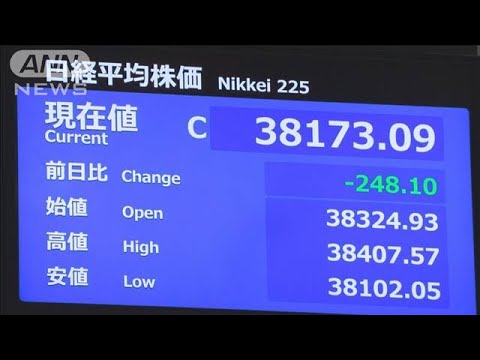 12日の日経平均株価は5営業日ぶりに反落。終値は前の日より248円安い3万8173円でした。