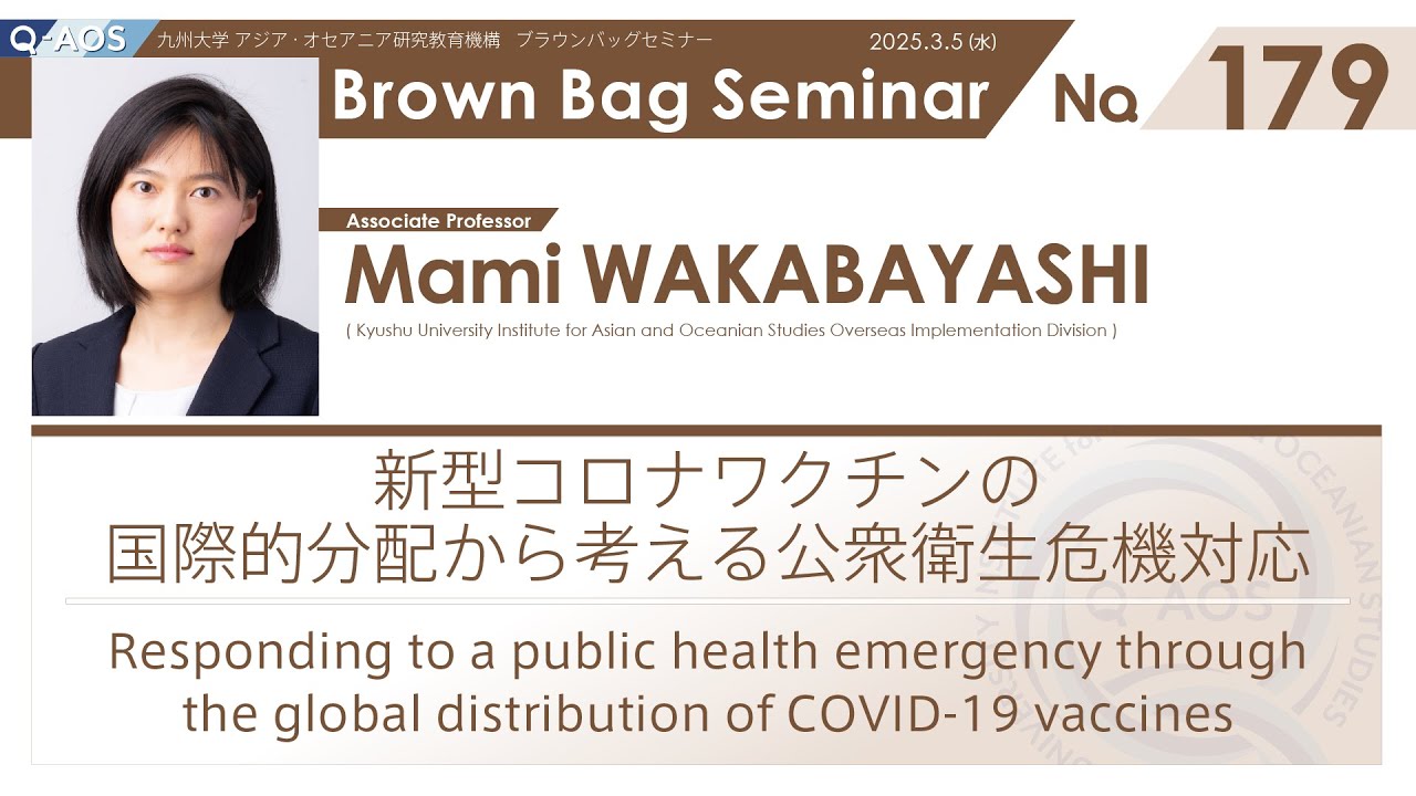 Brown Bag Seminar No. 179 若林真美 准教授 「新型コロナワクチンの国際的分配から考える公衆衛生危機対応」