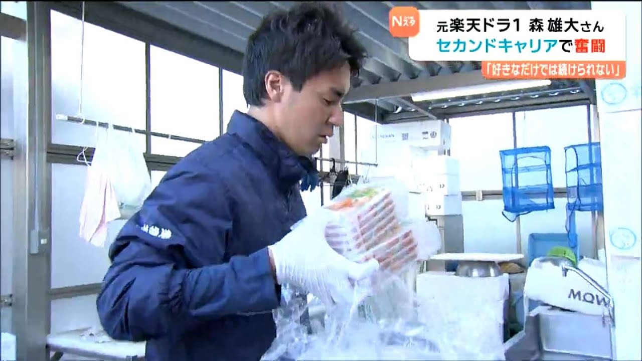 現役引退後も野球に関わる職業に就く人が多い中、全くの異業種に飛び込んだ男性がいます。水揚げされたマグロが並ぶ宮城県塩釜市の魚市場。そこにかつてプロ野球の世界に飛び込んだ男性の姿がありました。元東北楽天ゴールデンイーグルスの投手、森雄大(もり・ゆうだい)さん(30)です。森雄大さん