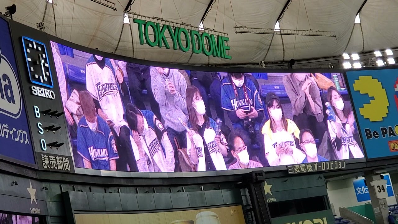 20210418[2回ウラ攻撃前]ダンスパフォーマンス ファイターズガール マスコット 北海道日本ハムファイターズ主催試合@東京ドーム・レフト外野
