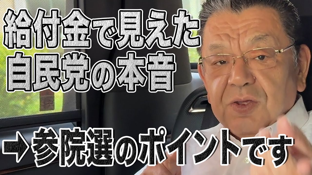 はいえということで7月20日でえ参議院 選挙の東海表迎えるわけなんですがまあの 参議院選挙後の展開も含めましてねえ見て いく上で非常にこう興味深いというか びっくりするようなえ発言がですねえ自民 党首脳から飛び出したというところについ て今日はですねえちょっと触れていきたい と思いますが少々古い話で恐縮なんですが 6月14日のことなんですけれどもあの 自民党のですね森山博幹事長が地元である 鹿児島市内で講演をしてですねびっくり する発言をしてるんですよえまどういう 発言をしたのかというところま若干ね ちょっと切り抜きみっぽくなるんですが その辺はご用赦えま原点についてはですね 原文についてはおそらくネット上検索して いただければ出てくると思いますんでねえ そちらの方ご覧いただきたいんですがえ どの部分に私が注目したのかと言うとえ こんな森山発言です消費税を守ることが 国民を守ることにつがる政移をかけて維持 していくというようなえ発言をしたんです ね繰り返しますね消費罪を守ることが国民 を守ることにつがる政治をかけて維持して いくというような発言をしましたまこのね え審議と言ってですかとするところを説明 させていくとえ消費税というのは社会保障 のえま年金介護医療少子化ですねえ社会 保障制度の重要な財源なんだからえ国民 生活にとってこの社会保障制度っていうの は各ことのできないねえ重要な基盤なんだ からえこれを守るということをするために はその財源となっている消費税を守ら なければならないねつまりえ消費税を守る ということは国民を守るということなんだ というような言い方してるんですけれども 果たしてねこのなのかなこの発言を持って 今私どっちかというとねえ森山さんに対し てえ寄り添った解説してんですよねあの むしろ攻撃的な解説ではなくてえ説明では なくてむしろ寄り添ったそのシーンを 読み解いてえ森山さんのためになるかの ようなそんな気持ちはさらされないんです けどねえ森山さんのためになるのようにえ 心がけて今解説をさせていただきたんです がそういうような説明をしてもですねこれ 納得してもらえるのかなとねえ説明をし ながらもねそんな風に考えてしまいました え国民生活を守るんだったらとっとと消費 税下げろというようなツッコミがあるいは 減税しろと消費税に限らず所得税減税で あるとかえあるいはガソリン暫定税率を 廃止するとかえそういう減税をすべきじゃ ないのかというね相ツッコみがえね及んで くるんではないのかなとえその風にもえ 思いますけれどもまあそれ言った意味で 言うとまねえこの財務省に完全に絡めにさ れているというとか完全に洗脳され尽くし ているなとねえですからなんかこう利を 解いてですねえやはり今ねそういう減税が 必要なんではないかこの物価対策という中 で国民生活がこれだけ苦しんでいるんだ からその国民のねまあのなんですかなこの 国民負担率と言ったらいいんですかねえ それは1つは納税もう1つは社会保険料の 支払いえこういったところがですねもう 46%超えているという状況の中で就任の よね半分近くがですねえこの社会保険料で あるとかえ税金で持っていかれている以上 今非常に国民生活苦しいんだからやっぱり ここは軽減措置を取るべきじゃないのか 減らして欲しいというようなですね民を 完全に魚でするかのようなですねま発言と しか問えられないんですねキャップぽ譲っ てどうでしょうねやっぱり地元だという こともあってえしかもこのえね箱の中 つまり建物の中でね広く一般大衆に対して 言ったわけじゃない自分たちの自民 あるいは自民党のですねえ支援者に対して 訴えかけたというところですからまあの そういったような発言がついついえ オーバーンするようなね発言が出てくる こともえ否定できなくもないんですけども ただですね私思うんですよえこれは本音で 言ってるなと本気で言ってるなとね何もえ 財務省から言わされたようなえことでも ないんだろうなとえどうしてかと言うと ですねやっぱりこのなんですか参議院選挙 前にして相変わらずですねその給付金 ばら巻きえこれをやってくることを決め ましたえこれについては国民1人当たり 2万円えそしてえ住民税非課税世帯の大人 に対しては住民非課税世帯の大人そして 子供にた子供っていうのはえ全ての子供 ですよね住民税非課税世帯の大人と全ての 子供に対してはもうプラス2万円ね4万で どうだみたいなねえそんな話になってる わけなんですがこの2万と4万の日本建て でえ給付金をばら巻きますよとえこれはえ 選挙公約として盛り込まれましたたらね私 ねどうにもこうにも引っかかるのが やっぱりこのねえ住民税非課税世帯の大人 というところなんですよねえ住民税非課税 世帯というと何やらですねえ生活に困窮し ている生活が苦しいあるいは所属が少なく てえね住民税を納めることができないと いう方々をですねすぐこうイメージ