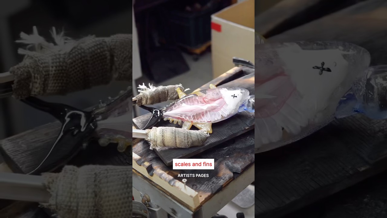 this artist creates the wildest glass sculptures if you can imagine it Miwaito has probably created it in glass miwa is a glass artist inspired by the cartoons toys and movies of her childhood along with Japanese heritage and everyday moments it takes an incredible amount of skill and technical ability to work with glass she captures the spirit of objects and animals like this tuna she created from the inside out building its skeleton organs scales and fins all visible through the colorful translucency of glass recently she made a squid and I find it mesmerizing to watch her pull shapes from the hot glass gradually building this beautiful organic creature by bending and splicing the molten material she’ll create everyday objects too like this dumpling a hot dog with tomato sauce or even a rice ball she recently made this tiny little ladybug and it really struck me how nimble and reactive you have to be sculpting glass in those moments when it’s hot and there’s only a short window to get it right i make videos celebrating the work of living artists get my free art newsletter on my profile