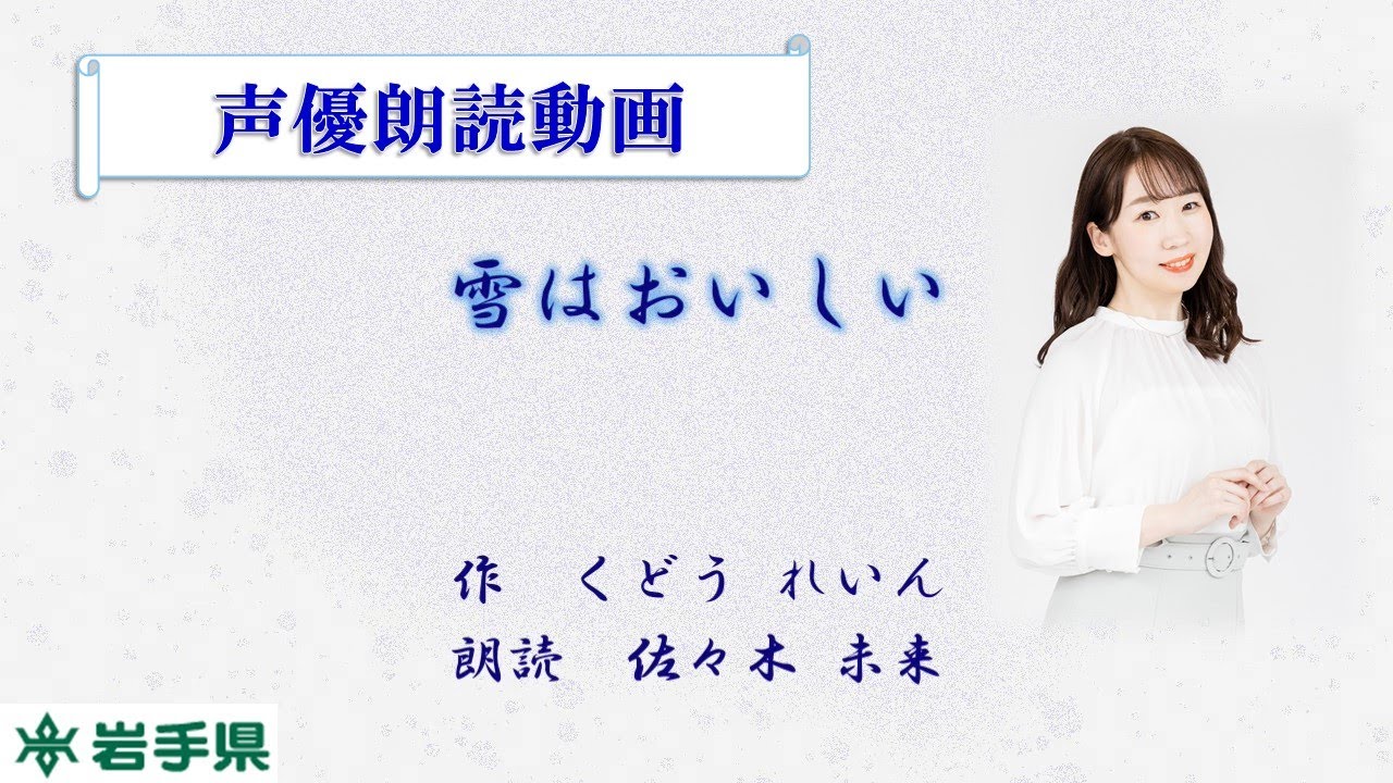 岩手県出身の声優 佐々木 未来(ささき みこい)さんに、同じく岩手県出身の作家 くどうれいん さんの作品を朗読していただきました。 岩手の風景が目に浮かぶ、とても素敵な作品と朗読です。◆佐々木 未来:盛岡市出身。声優事務所 響(㈱ブシロードムーブ)所属。 ◆くどうれいん:盛岡市出身在住。会社員。俳句結社「樹氷」同人。コスモス短歌会所属。「雪はおいしい」作:くどうれいん(「うたうおばけ」より。2020年、書肆侃侃房) ※未来さんからのメッセージは、こちら↓ くどうれいん佐々木未来声優岩手朗読羅小黒戦記 ぼくが選ぶ未来雪
