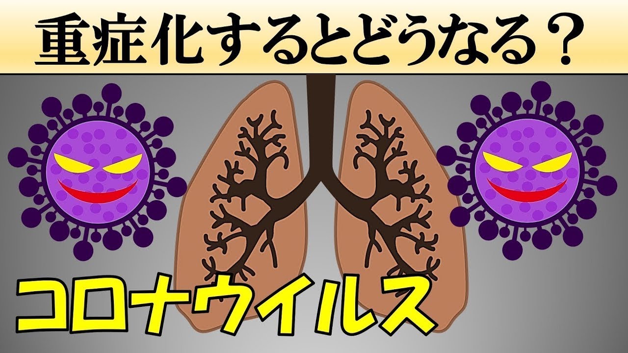 2019年末から世界的に流行している 新型コロナウイルスこのウイルスに感染 すると熱咳喉の痛み頭痛といった風のよう な軽い症状しか出ない場合も多いですが 発火して命を落としてしまうこともあり ます中国4万4672 人の感染者のデータを分析した結果新型 コロナウイルス感染者の81%は継承で 14%が重症5%が重得だったそうです そして悪化して命を落としてしまう人の 多くは肺炎が関係していると言われてい ますでは新型コロナウイルスに感染して 肺炎になる時体にはどんなことが起きて いるのでしょうか今回はそんな新型コロナ ウイルスについての疑問を解き明かして いきます新型コロナウイルスには感染者の 咳やくしゃみで飛んだを浴びたりウイルス がついたものを触りその手で口や鼻を触る ことによって感染することが多いです もし体には防御システムがあるため例えば ウイルスが侵入しても喉や鼻でウイルスを とめることができれば風のような症状しか 出ないことも多いですではウイルスを 止めることができずさらに奥へと進んで肺 に侵入してしまうとどうでしょうか炎症が 肺で起こるすなわち肺炎となってしまう 可能性があります2020年中国武漢大学 の報告によれば新型コロナウイルスによっ て監視性肺炎を起こすことが確認されてい ます私たちの肺にはという武道の負のよう な組織がありここでは酸素と2酸加炭素の 交換が行われています 息を吸えば酸素は血管を通じて体内に運ば れ息を吐けば血管から2酸加炭素が出され ますここで新型コロナウイルスに感染する と配放の周りの感出などに様々な原因に よって炎症が起こり壁が熱くなって硬く なりますこれによって血液中に酸素が 取り込まれづらくなってしまいます さらに周りの血管から液体が漏れて配放内 に溜まることによって液体が酸素の 取り入れの邪魔になってしまうこともあり ますこういった理由によって息が苦しく なる呼吸ができなくなるといったことが 起こってしまいます新型コロナウイルスに よる症状が悪化すると人口呼吸機が必要に なることがありますがこれが大きな理由 です なおアメリカクリーニックの意思スーパー ゴシさんによれば新型コロナウイルスは他 の感染症と比べて呼吸不全の進行が早い そうですまた新型コロナウイルスによる 肺炎は一般的な肺炎に比べて治療が難しい と言われています実は肺炎の多くは ウイルスではなく細菌が原因です この場合構成物質などを使うことによって 治療を行いますしかし新型コロナウイルス はそもそも新しいウイルスで現在新型 コロナウイルスに特化した治療法は確立さ れていません従ってウイルスを退治するに は免疫力に頼るしかない部分もあり免疫に よってウイルスが排除できれば症状は改善 し排除できずに悪化していくと市議に立っ てしまうことがありますまた常ワシントン 大学付属病院の意思キースモートマンさん によれば新型コロナウイルスによる肺炎が 長期間収まらない場合肺の損傷が一生残っ てしまう可能性まであるそうです新型 コロナウイルスは大した症状が出ない人も 多く大丈夫だと軽視されがちですしかし 症状が悪化して死に至ってしまうことも あるためとにかく日頃から手洗いなど予防 を心がけることが大切になってきます今回 は新型コロナウイルスによる肺炎について 解説しました最後までご覧いただき ありがとうございましたそれではまた次の 動画で