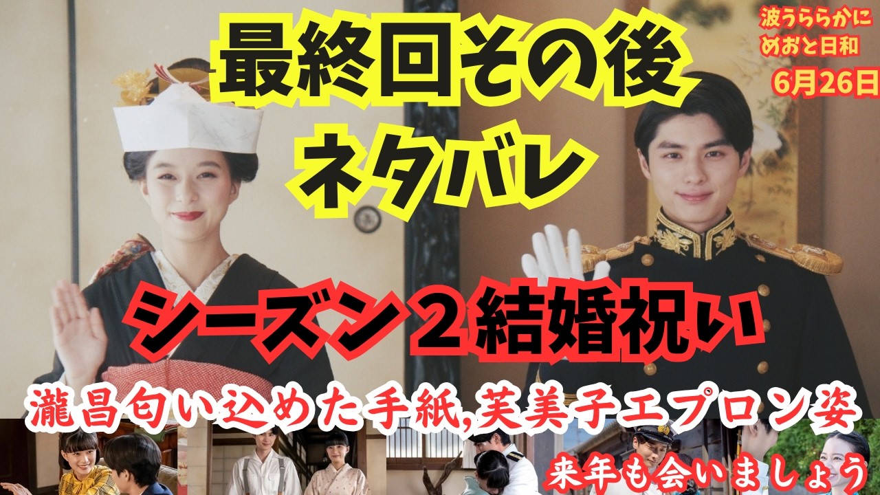 『波うららかにめおと日和』ドラマ最終回その後ネタバレ放送後内容,最後キス!シーズン2「結婚祝い」瀧昌が手紙便せんプレゼント!深見,芙美子エプロン姿見たいと仲睦まじい様子,漫画最新話あらすじ6月26日