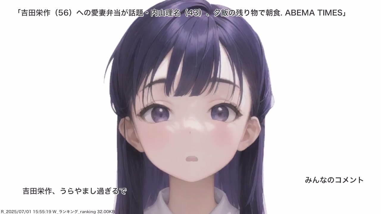 こんにちは次のニュースです 吉田作56絵の愛弁当が話題内 43夕飯の残り物で朝食安マタイムス 俳優の内山リナ 43が30日Instagram のストーリーズを更新 夕飯の残り物だという手作りの朝食を公開した 以下は皆様のコメントです 内山りなちゃん昔はガキっぽい感じやったのにな 年重ねて色っぽさを身につけ身のバランス感がえげつないわ 吉田作羨ましすぎるで 最近ご夫婦ネタが多いですが内山リナさんはとても演技のうまい女優さんですよね ドラマも期待しています いや何も芸能人だけではないこういうこと は一般家庭では当たり前です何が話題なの か教えて欲しい残り物使うのは当たり前 演技もできて料理もお写真も上手とか憧れ ます人さすが芸能人さん第2の人生って あるんだな私も頑張ってみよう重ねて るって感じがしてお似合いだと思います このお2人幸せそうですねお似合いこの2 人昔ドラマで共演してたよね ご飯ネタ多いて内山さんお母さん本能が昔からありましたね チャンネル登録をどうかよろしくお願いしますいいねボタンも何卒ぞよろしくお願いします うん