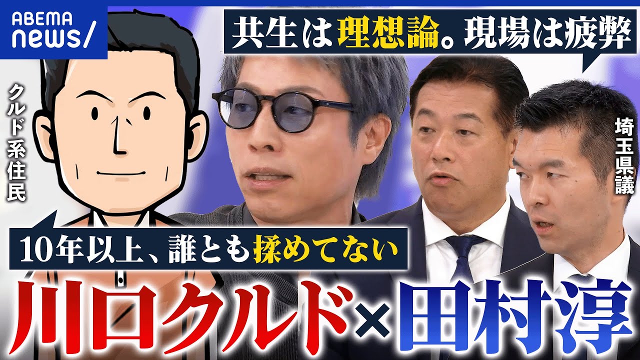 年20 年でも同じってことですよね。 はい。ま、それは日本人の住民がどう思ってるかっていうところに答えがあるんだと思います。 いやいや、あのご本人はどう思われてんのかなと思って。 その同じなんですよ。僕も意見は同じなんですよ。 ルールを守れない人は日本に行ってしくないし強制でいいと思うんですけど、 ただそうじゃないなんかもう当たり前のように仮方面がね、付いてしまってそれを認めてきた国があるわけじゃないですか。ま、市なのか うん。町なのか20年っていう だから認めないという風にあの家事を切るべきだと思います。 だ、だから認めてたけど、もうそんな年数とかじゃなくても、もう 感情でやった場合にどうしても悪用する人もそこに紛れます。 ですからそれをあの見た目でこう分けるっていうのは不可能なんですね。 はい。だから僕はあの別に論を唱えてるんじゃなくて個人の見解が聞きたかっただけです。 はい。はい。はい。だから私はそう思う。 はい。わかりました。 高木さんはどうですか? ま、私も今さんが行ったところとほぼ一緒なんですけれども、要するに法律っていう風なものがなるよりも重要で、そのルールを守るかどうかっていうところをその先ほどの、ま、そのクルドの方、またそのを支援してる方もそうなんですけど、それは徹底していただきたいっていうことがあります。ただあの繰り返しになりますが一旦そのこじれてしまったもの自身を、じゃあこれから我々は全任になりますから悪いことしませんのでって言って、あ、じゃあ今日良くなりましたねというようなほど簡単なものではないと思うんですよね。 だからその今回のそのあの例えばその、え、対とか強制っていう風なものってすごく綺麗な言葉ではあるんだけれどもそのすごくこじれてしまったこと自身をそのすごく元に戻す倍以上のやはりその労力が必要なのかなという風に思っておりますんではい。だからそこをあの考えた上でこ考えていかなきゃいけないという風には思っておりこです。 時間も迫ってきたんですけどさん教えたいございました。 あの対話だとか強制は綺麗ごとではないですよね。大変だと思います。 うん。 そ、大変なことを私たちはやろうということなんですよ。 つまりこれからの社会明日をどうしていくのかを。 その時に様々な地球上の様々な人は移動しているその中でこの日本社会があるということですね。 日本例えば川口市だけがあるわけじゃない。だから私は川口市あるいは埼玉県だけに責任があるわけじゃないわけですよ。 で、日本日本社会として考えた場合に地球上の中での日本社会、今海外の在流法人っていうのは長期と住を合わせると 140万超えてるんですね。 それ以外にたくさんの人が移動してます。日本人も。 で、その人たちも快適に暮らしたいし、先おっしゃったように守るべき法律を守るためには法律も知らなきゃいけないわけですよ。 で、先のゴミの問題なんかでもクルドの下だけじゃないわけですよね。外国の人でやっぱりわからないという問題もあります。で、もっと言うと日本人もそうなんですよ。 それは、それはす、あ、あの、ちょっと今回の議、あ、ごめんなさい。どう、 ごめんですね。それでその通で、で、これはなぜかと言うと、件によって、あ、あの、都によってルール違うんですよ。 ごめ、分別ルールになっていんですよ。バナーとか文化とかそういう言葉でくってやっちゃって法律は守るっていうのはもう当たり前のことそやりゃいいんだけど、それになってないことが多すぎてで、マナーや文化っていうのは日本人の中でもいろんなピンカラあるんですよ。 その個人によって簡単することはルールをちゃんといっぱい決める細かくっていうことだと思います。 で、それはね、この川口市や埼玉県のあえて言うと 地方自治事体に全部幸せしてたんですよ。国がしっかりとやらなきゃいけないことわかりましたね。すいません。ここで国に考えてもらいたいということですからね。はい、わかりました。 え、高木さん、もろいさん、ムスタフさん、鳥さん、ありがとうございました。ご、 ありがとうございました。 ありがとうございました。 安倍マプライム進行の平石直行です。ご視聴ありがとうございます。これ気にチャンネル登録よろしくお願いします。