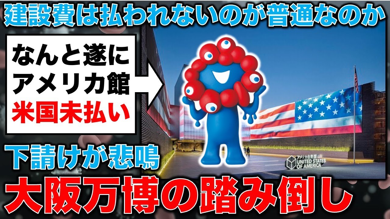 はい、皆さんこんばんは。おやめです。え 、恐怖の大阪踏み倒し万博のですね、え、 踏み倒しの範囲がどんどん広がっている ようです。 え、最近出た報道でアメリカ間でなんと アメリカ間でも発生してるそうですね。 今日のね、昼に、あ、今日で、えっと、 7月2日なんですけど、