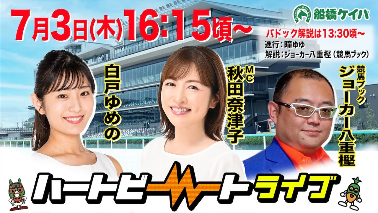 【船橋競馬】ハートビートライブ #202【前半パドック解説 進行:瞳ゆゆ/解説:ジョーカー八重樫(競馬ブック)】【後半出演 進行:秋田奈津子/ゲスト:白戸ゆめの/解説:ジョーカー八重樫(競馬ブック)】