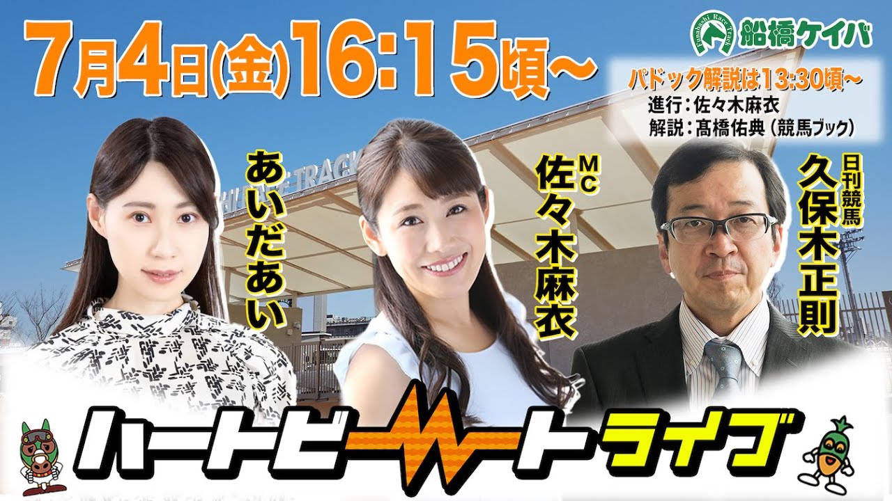 【船橋競馬】ハートビートライブ #203【前半パドック解説 進行:佐々木麻衣/解説:髙橋佑典(競馬ブック)】【後半出演 進行:佐々木麻衣/ゲスト:あいだあい/解説:久保木正則(日刊競馬)】