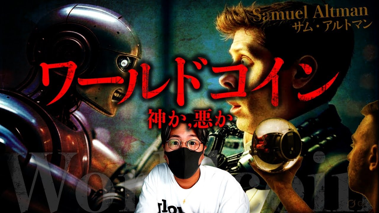 はい、どうも皆さんこんばんは。闇猛です 。これまで闇猛心の動画って、ま、経済の 話とか広く金融の世界っていう風な感じで くって都市伝説チック、陰謀論チックなお 話をこれまでは取り扱ってきたんですが、 今回はがっつり仮想通貨の話、しかも1つ のプロジェクトについてお話ししていこう と思います。これちょっとね、関係者から もしかしたらね、おし仮を受けたりとか 圧力で何かしらされる可能性もあるかなと 思いながらちょっとビクビクしながら話し ていくんですけれども、ただ今後AIが 世界を支配する可能性がある状況の今、僕 たちはしっかりね、この問題について考え ないといけないと思います。今回扱う テーマ、ワールドコイン。以前からかなり 話題になった仮想通貨で現在はワールドと いう名前にリブランディングされています が、一旦今回は分かりやすいワールド コインという名称で呼んでいきたいと思い ます。ま、最近このプロジェクトに関する ニュースっていくつか出ていますよね。 登録するだけでお金がもらえるとか、目を スキャンするだけでトークンをもらうこと ができるとかね。ま、これ一般的に考える とそんな美味しすぎる話あるかっていう話 になってくるわけですよね。こういううま すぎる話には裏があると疑え。これは仮想 通貨や投資の世界では1番重要な危機回避 思考だと思います。ま、そんな中で出てき たこのワールドコイン一体どういう プロジェクトなのか。そしてこのワールド コインは何を目指し、何を目でいるのか。 ま、今回の話は全て僕の頭の中での妄想の 話であって、確定的な要素はほとんどあり ません。ただ1つ、今後確実に訪れるAI に接近される未来。それを皆さんイメージ しながら是非この先グッドボタンも押して 進んでいただければ嬉しいなと思います。 ワールドコインというのはいわゆる仮想 通貨のアルトコインの一種なんですが、 そのシステムというか構造はちょっと普通 じゃないんです。どういうところが普通 じゃないのか。1番の特徴は目の交際を スキャンするということなんです。つまり 目のスキャンで本人確認をするということ です。専用の金属型のオーブという デバイスに自分の目をかざすだけで登録 することができてその登録を完了させると ワールドコインのトークンが継続的に配布 されるシステムになっています。登録者の 中にはすでに1万円相当以上のワールド コインを手にした人はざにいるという状況 。特にアジアや中南米など経済格差がある 地域でどんどん普及していると報道されて います。これってまさにテクノロジーの力 を使ってお金を稼いで皆さんに配って最低 限の生活を保証する仕組みであって めちゃくちゃ確信的です。このような 仕組みのことを政治的にはベーシック インカムと言います。そしてこのワールド コインの立ち上げに関わったのがサム アルトマン。かの有名なopenAIの CEOでチャットGPTという精成AIを 作った人物です。ここまでの話で出てきた 3つのワード、仮想通貨、生成AI、 そして生体認証。この3つ皆さんどこか 不気味さを感じないでしょうか?この ワールドコインプロジェクトの交際認証で 個人を唯一無理に識別する技術を使い、 さらにオープンAIで人間を超える知能を 作り、仕事を任せて加えてユニバーサル ベーシックインカムとしてトークンを配布 していくという構造。これは人類みんなに 平等な経済的権利を与えるものとして理想 的に思えるんですが、でもこのシステムを 利用すれば人類を選別してAIが誰にどれ ぐらいの量のトークンを渡すかを決めれる 社会が作れてしまうということなんです。 唯一無理の個人を識別できるワールド コインはグローバルなIDインフラとして も機能すると言われています。例えば あなたがどこにいてもパスポートがなくて も交際スキャンさえすれば自分はここに いる。私はこの人間ですと証明できるよう になります。これはとても便利なんですが 、逆に言うとスキャンしなきゃ存在証明 できない社会が来るということになります 。言うなればワールドコインはただの トークンではなくて生態認証と引き換えの 身分証明という風に言い換えることができ ます。ではユーザーが差し出したこの交際 認証データは一体何に使われるのか。まず 前提として交際って究極の個人情報とされ ています。DNAや指紋よりも偽装し づらく整形することもできず廊下しても ほとんど変わらないと言われています。 つまりあなたという人物を確定的に1人に 結びつけることができる生態の鍵なんです 。その情報を使ってこの人間は1人しかい ませんという風に証明することによって トークンを配ることができる。1度 スキャンされた交際データは ブロックチェーンに変換され1方向発さ れると言われています。つまり交際データ で個人が特定されたらまずいので、個人が 特定できないようにちゃんと暗号化されて 保管していると説明されています。で