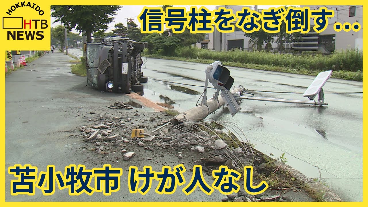 5日朝苫小牧市で乗用車が信号柱をなぎ倒す事故があり、周辺の道路が一時渋滞しました。