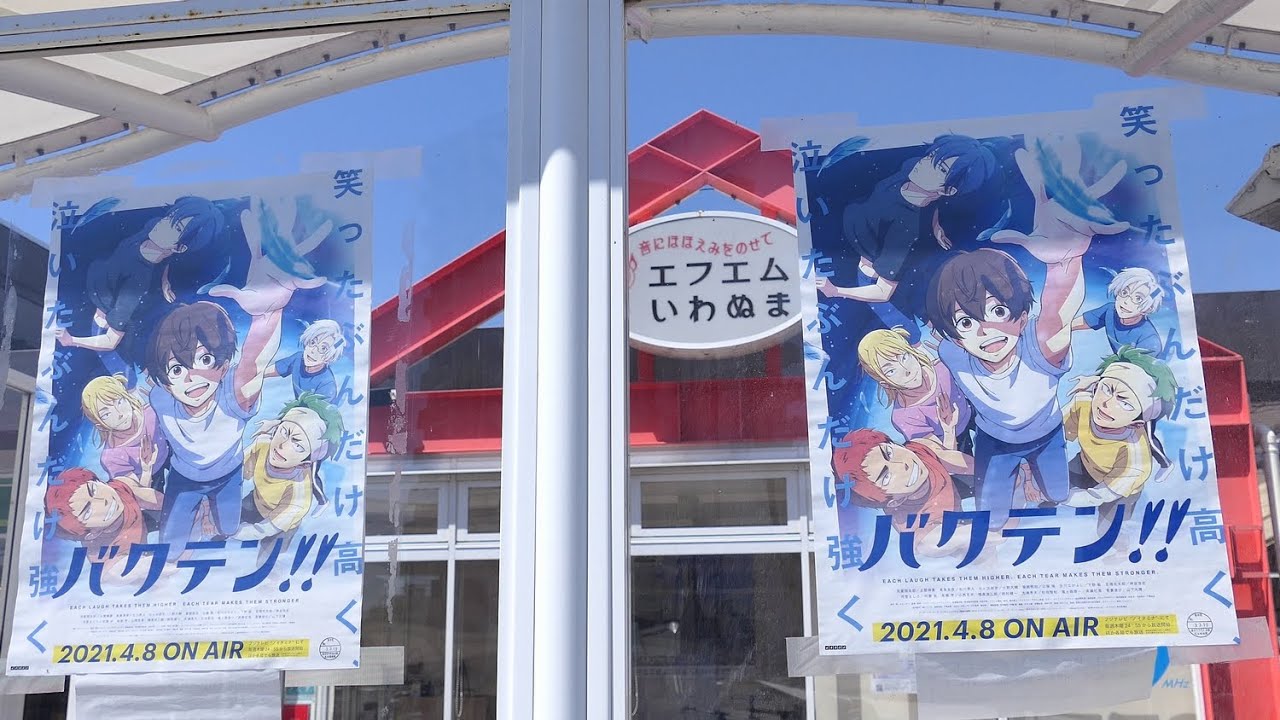 Share Facebook Twitter Pinterest LinkedIn 令和3年4月8日から、宮城県岩沼市を舞台とするTVアニメ「バクテン!!」がフジテレビ系列で放送されています。 この動画は、岩沼駅東口のバス停に掲示されている「バクテン!!」のポスターです。 (令和3年4月11日撮影) TVアニメTVアニメ バクテン!!バクテン!!フジテレビ