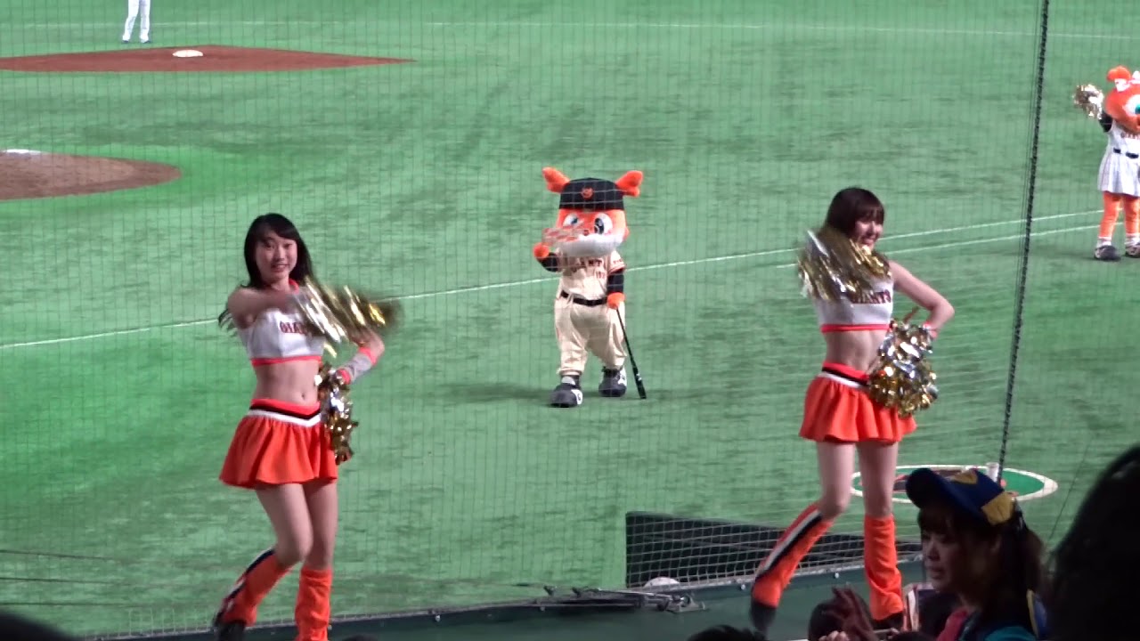 ジャイアンツ公式マスコットガールヴィーナスの7回裏の「闘魂込めて」ベンチ裏での特別パフォーマンスです。