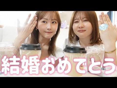 めっちゃ傾いてる。でもま、行けるっちゃいけるか。報告動画みたいじゃん。確かにということでおめでとう。 あ、ありがとう。もう始まった。 もう始まってます。 あ、待ってんだ。もうこれ 回ってる。ごめん。 おめでとう。 改めておめでとう。 はい。ということで久しぶりのエミリんだね。 うん。 復帰したから動画一緒に撮るのは初だもんね。 そうだね。プライベートでちょね。 そう、そう。 ってたんだけど、今回はエミリンがおめでたいことに ありがとう。 ご結婚したということで はい。ありがとうございます。 ありがとうございます。 イエーイ。 イエ。 ありがとうございます。 復帰したすぐ後ぐらいになんか 1回ご飯食べたの覚えてる? どこ?どれ?そのいっぱいご飯を食べてるからさ。どのご飯かわかんない? えっとね、3人でご飯食べて。 あ、覚える?覚え、覚えてる?覚えてる。うん。覚え。 私た今でも覚えてんだけどそん時に私エミリン 足立ち君と結婚すると思うって。 あ、言った。覚えてる。 うん。正事の人と付き合ったよって言った時に、え、私さ、結婚すると思う。で、もうその時に言ってた。予言した。 予言しました。いや、おめでとう。 え、何を会取ってたの?ちなみに、え、なんか普通にお似合いだなっていう風に言うのと、 え、ま、ま、普通にお似合いなんだけどなんだろう。本当になんか言語できないんだけど直感だよね。怖。え、多分この 2 人結婚するだろうなっていうエミリンから話を聞いててもすごい波長があってるなっていう風に思て。 ええ、すごい。 見てる。こっちもなんか幸せそうっていうか。 え、嬉しい。うん。ありがとうござい。 いや、おめでとうございます。ということでエミリーが結婚しました。めっちゃ何回も言ってくれんじゃん。何回も言う本当におめでとう。私マジでインスタの 2 人の写真見てマジ泣きそうになったぐらい本当に感動した。もうあ、こういうエミリンを引き出してくれてありがとう。わあ立ち君ていう感じ。 ああ、でも確かに言われるかも。オというか、もうこの私になっちゃうからさ、やっぱその彼の前だとなんだろう、プライベートで入れるというか、頑張んなくていいやってなっちゃうから。 うん。素敵なことじゃない。素敵だよ。 2 年前とかぐらいまで多分うちらお互いさなんか UBバイとか食べながらさ べた ダラダラダラダラ過ごしてのに 今やもうママになる。 ま、まだ席入れてないんだけど結婚が決まりなんか。 あ、そうか。まだ席は入れてないの? あ、まだ入れてない。 え、ちなみになんか別に日付とか言わなくていいんだけど、この日に入れようとかっての決めてるんだ。 決めてるの。 そう。それがなんか2 人で考えた時にこの日だねってなったんだけど結構その結婚しようとプロポーズ受けてから日が開いちゃうから、ま、もう避け行っちゃうかみたいな皆さんにも先に言ったしみたいな。 [音楽] うん。 指輪は?あ、持ってきてない。 持ってきてないな。 持ってきたらよかった。確かにこれしたらよかった。いてほしい。編集者さんごめん。指入れといてくれない?編集ごめんね。編集者さん。いや、なんかさ、指輪ってつけるタイミングが自分的に難しくて。 うん。あ、はいはいはいはい。 なんかどのタイミングでつけたらいいんだろうっていう。 え、どうなんだろう?ちょっと私もそこら辺じゃよくわかんないかも。 なんかさ、結婚指輪ってさ、シンプルな感じじゃん。 でも焼き指輪ってさ、大きめのなんかピキターンみたいな感じだからさ。 うん。普合わなくてこっしかけれない時とかそのなんかお出かけの時とかしかけれない。あ あ、でももしかしたら攻撃だってそういう時に使うのかも。 なんかそう一応ね。それでもそういう風には書いてあったでもいいしみたい。そういうなんか特別な火とかそういうなんか大事な日とかにつけるみたいな感じに書いてあったから日常で今とこつけてないです。 うん。へえ。え、でもど、どうですか?もう結婚するっていう風になって。 いや、でも周りから言われんのはめっちゃ精神が安定してるって言われる。 ああ。 やっぱそのイライラしたりとかすることもなくなったし、何優しくなったというか、丸くなったねっていうのはめっちゃ言われるかも。ま、 確かにそれ感じるかもね。 感じる。 今までのエミリンの恋愛変歴とかを見てたら うん。 うん。落ち着いてる。あ、ちょ、安定してる。これ以外の言葉があんまり見つかんない。 そう。私結構さ、ちょがさ、安定してないのよ、あんまり。 ああ、そうだね。なんか要は仕事をすごいエミリン頑張る人じゃん、元々。でもなんか恋愛に悪い感情に引っ張られがち。 あ、そうだね。なんかめっちゃイラしちゃったりとか。うん。 なんでみたいな感じのそのなんか自分の思いが通らないみたいなこうなっちゃう。視野が狭くなっちゃう。 はいはいはいはい。 節があるんですけれども、 今は全然なんか客観視もできてるし