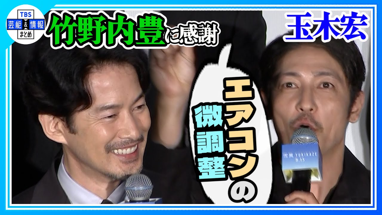 すごく細かく微調整をして何度も何度もちゃんと当たるかなみたいな感じでやってくださってありがとうございます。後ろまで届いておりました。 よかっ 俳優の竹の内豊さん、た木浩さんらが映画風の完成疲労上映会に登壇しました。 ではまず竹内さん はい。 駆逐館雪風館長寺か和俊という すいません。 割とさっきからここに立ってるんですと思います。よろし。 失礼しました。 とんでもないです。 いや、こっちから声が跳ね返ってくる。あれ、 その話はもう大丈夫です。まあ、はい。そうですね。 はい。ありがとうございます。ええ、 えっとですね、あの、ま、本当日々、え、 ま、今をこう生きる中、あの、ふと、えー 、命の尊さを、あの、感じることはあるん ですけれども、自国を守るために最前線に 出ていく串の館長とある責任の重さ、 役づりをする上でもうどんなに、え、考え ても考えても、あの、最後まで答えを 見出せ あの、そのまま撮影に突入していったと。実際撮影が始まってみるとですね、皆さんのこう一致団結した姿にこう支えられて、え、気づいたらいつの間にか長にしていただけたという、あの、そういう気持ちでした。 武田内さんと玉田玉木さんが初めての共演だと共演されました。 お互いの印象など すごくニュートラルな方であの笑っちゃだめなんですけどすごくあの今朝どっかで話した記憶があるんですけどエアコンの吹き出し口を調整してねあのちゃんと後ろの方まで風が届くようなっていう優しさを持たれた方ですしねこちらから喋ってるのかなっていう覗いたようなちょっとお茶めなところもあったりとかすごくあの一緒にで楽しくさせていただける先輩だなと思っており です。はい。 期待上げられたその体系、そして撮影現場で腹から響け渡るその声、もうどれを取っても、え、もう 000 人ご長というね、風格がもうみな切っていて、え、本当にあのリーダーとして、え、現場をこうまとめる、あの、そういう姿がですね、え、とても、あの、素晴らしかったなと思います。はい。 ありがとうございました。 [音楽]