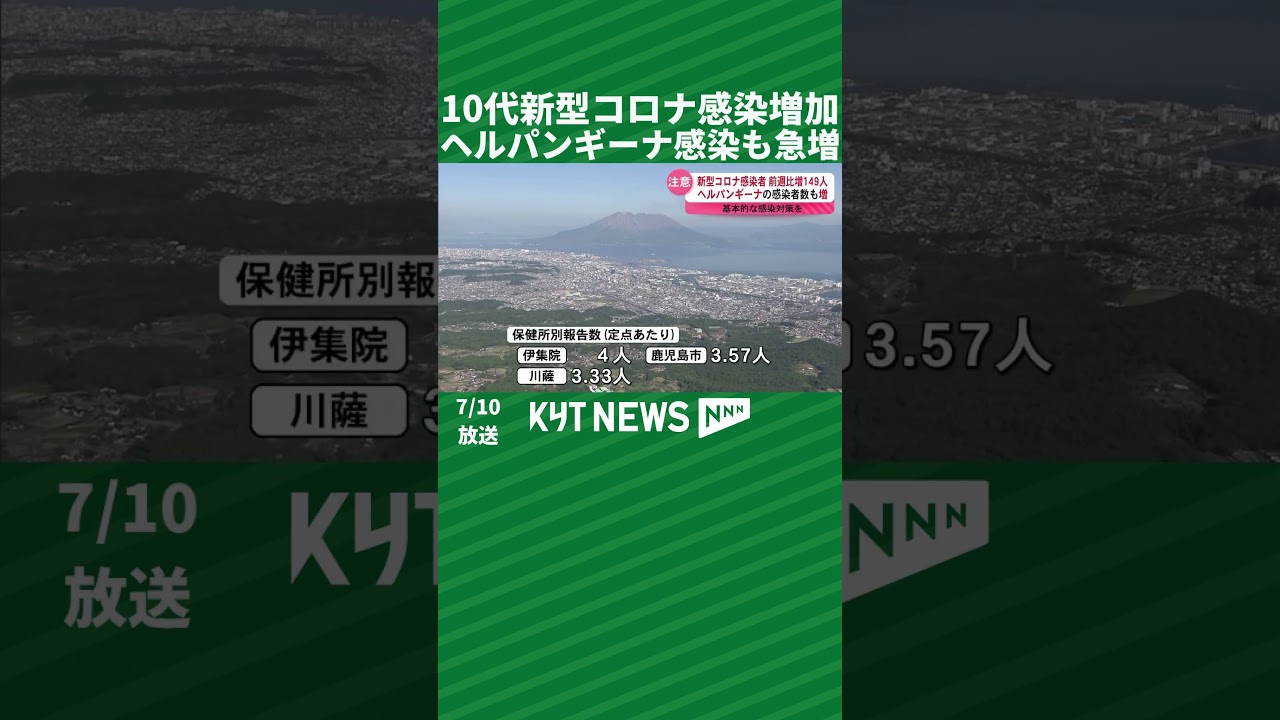 県の新型コロナ感染者は前週比41人増の149人で、10〜14歳が最多。ヘルパンギーナも急増し72人、伊集院で警報基準に達し、県は基本的な感染対策を呼びかけている