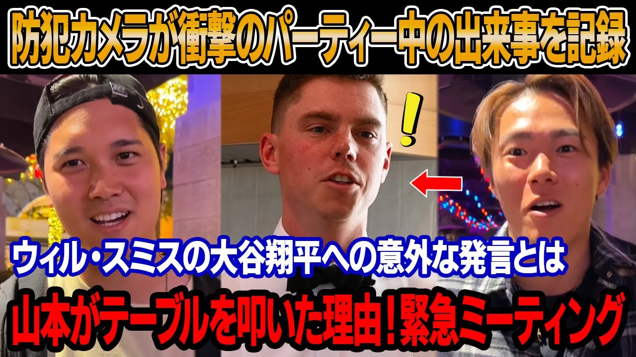 【速報】前半戦終了後の祝勝パーティーが大混乱に!レストランのCCTV、ウィル・スミスによる大谷翔平への衝撃発言の2分間映像が話題に!山本が思わずテーブルを叩く事態に?!ロバーツ監督は緊急会議を招集…