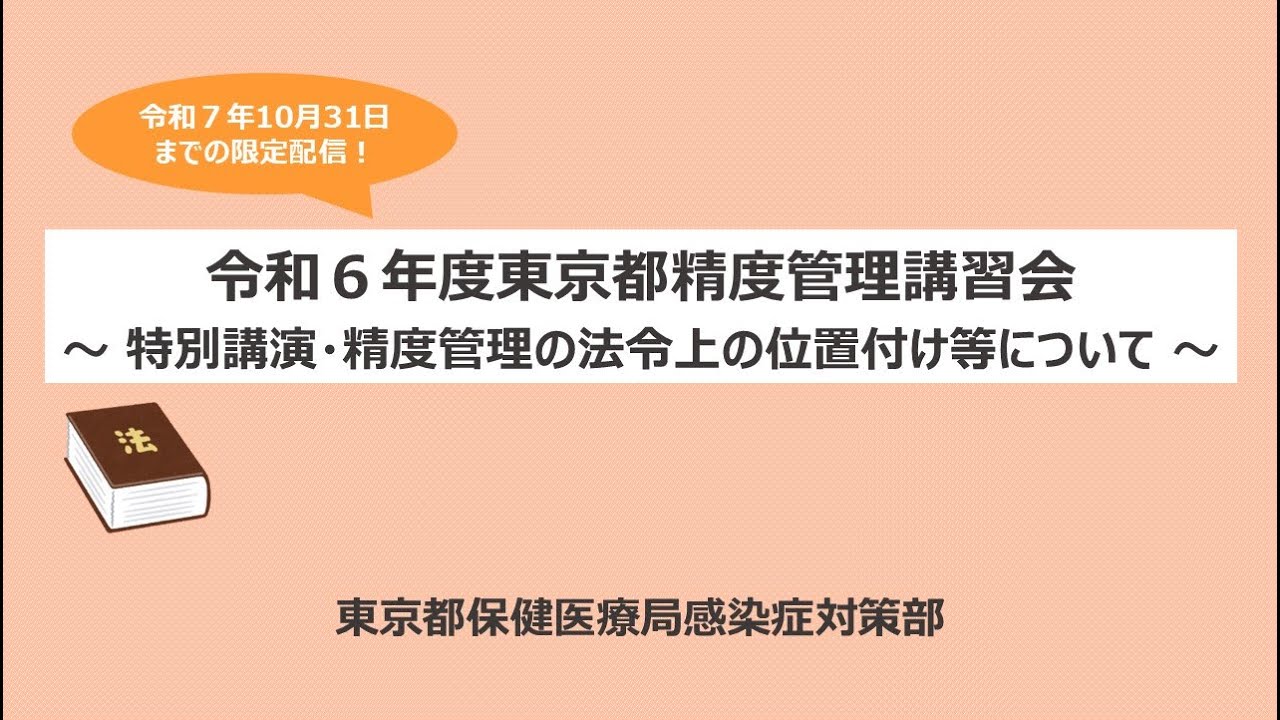Share Facebook Twitter Pinterest LinkedIn 【特別講演】精度管理の法令上の位置付け等について|令和6年度東京都精度管理講習会 #6 【令和6年度PCR等検査の精度管理講習会 #1~6】 令和6年度精度管理講習会動画を掲載いたします。ぜひ医療機関等における精度管理にお役立てください。 公開期間 令和7年10月31日まで 医療機関に対するPCR検査等の精度管理支援事業の詳細はこちら https://www.hokeniryo.metro.tokyo.lg.jp/kansen/iryokikan/seidokanri NEWS新型ウイルス検査で陽性