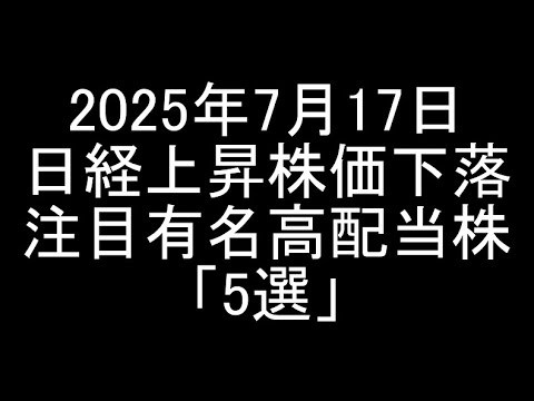 【2025年7月17日】日経平均上昇段階で株価下落の注目有名高配当銘柄「5選」紹介&解説【日本株】