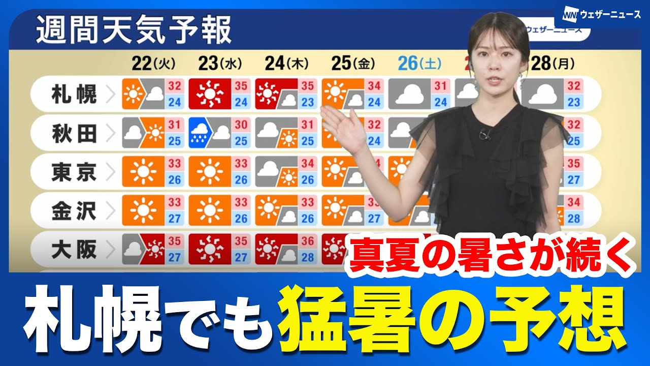【週間天気予報】真夏の夏さが続く 札幌で猛暑の予想