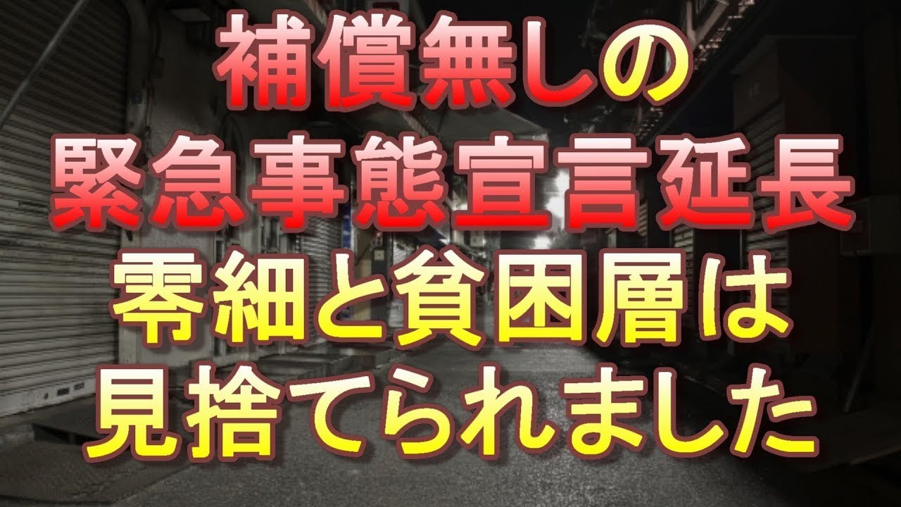 補償無しの緊急事態宣言延長へ!期間は1か月前後の見通し、中小と貧困層は死活問題!【コロナショック】【特措法】