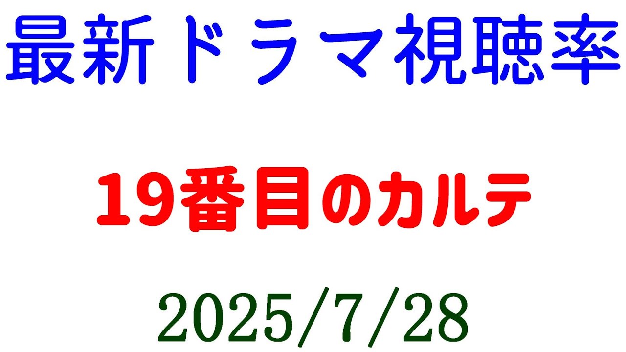19番目のカルテ 視聴率上がる!視聴率速報☆2025年7月28日付