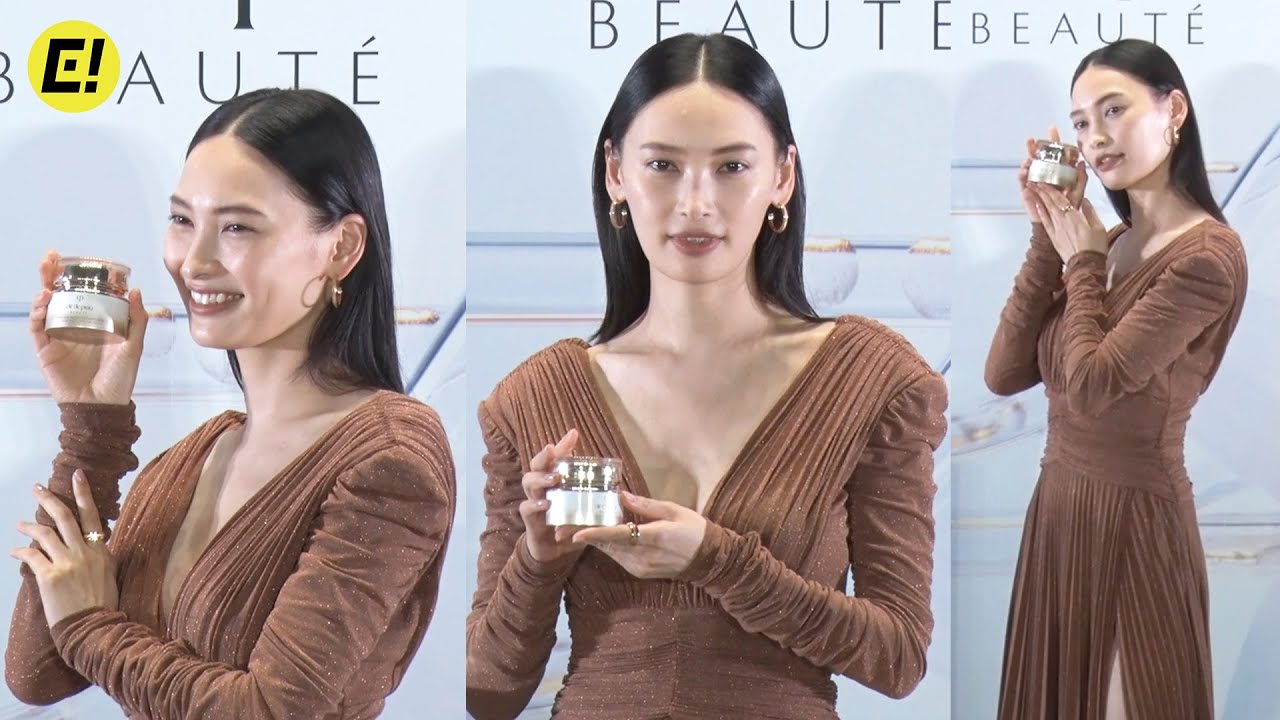 女優・モデルの大政絢が7月23日(水)に都内で行われた「積み重ねた輝きを、超えていく。クレ・ド・ポー ボーテ POPUPイベント」フォトコールに、胸元がV字にざっくりと開き、スリットからは美脚がチラリとのぞくドスレス型で登壇した。