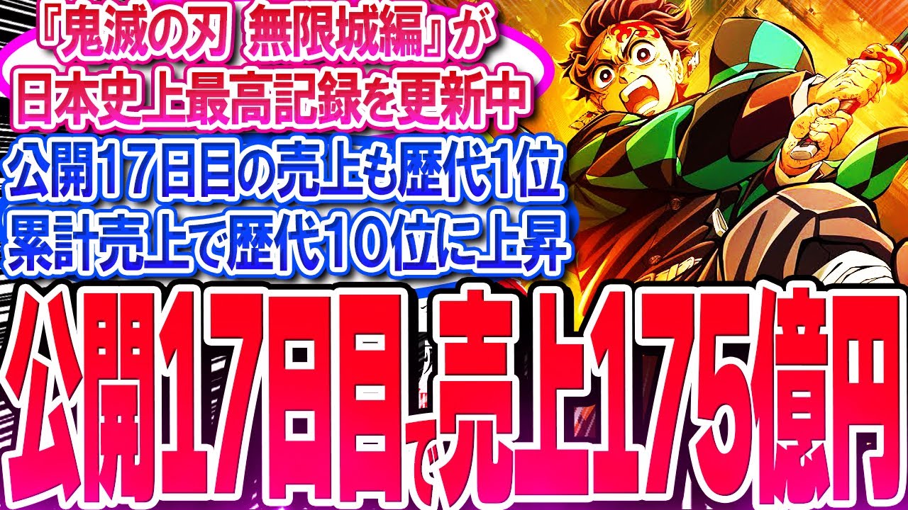 『鬼滅の刃 無限城編』が公開17日目で売上175億円!! 累計売上歴代10位↑【反応集】【興行収入】【竈門炭治郎】【猗窩座】【煉獄杏寿郎】【胡蝶しのぶ】【童磨】【冨岡義勇】【無限列車】【総集編】