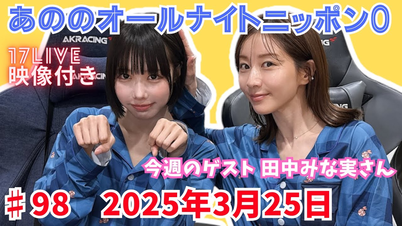 あののオールナイトニッポン0 #98(2025.03.25)ゲスト田中みな実さん、イチナナ映像付限定アフタートーク有り 概要欄にチャプター有り