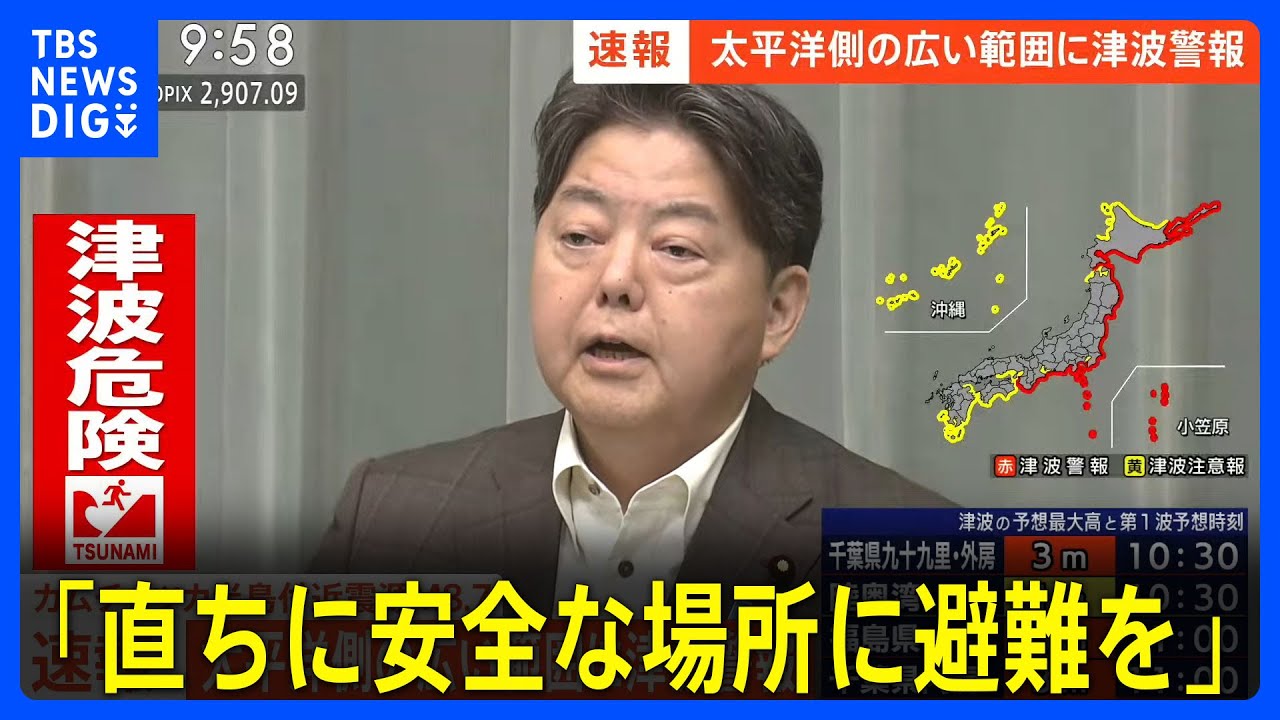 【太平洋側の広い地域で津波警報】林官房長官が避難呼びかけ(2025年7月30日)