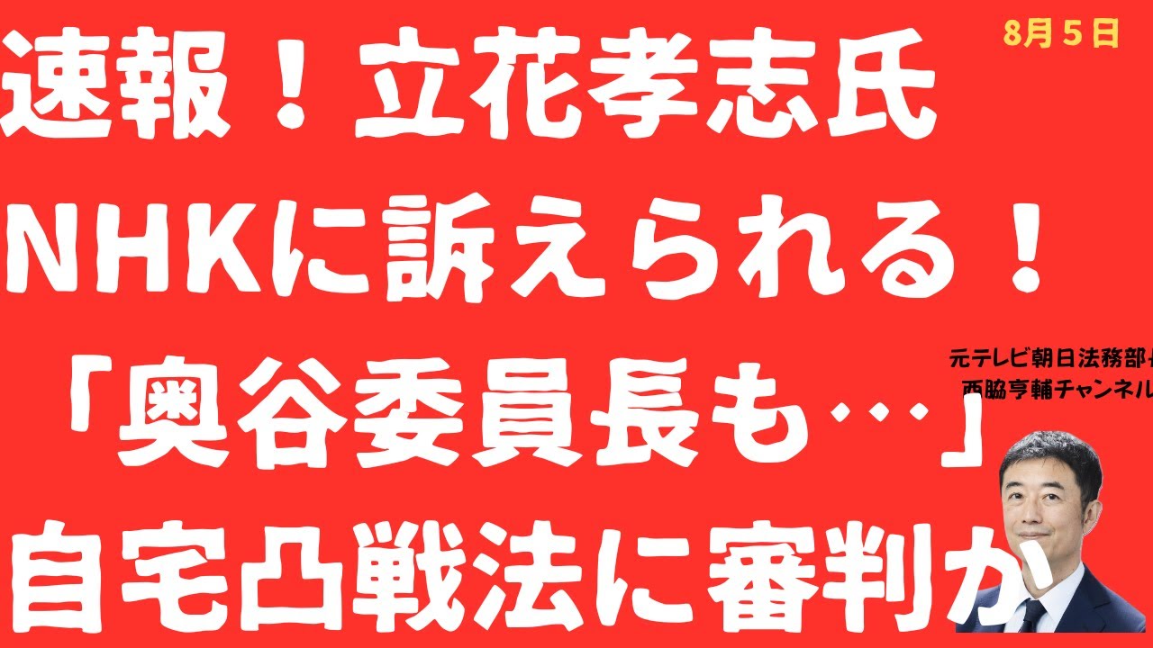 【速報】立花孝志氏をNHKが訴えた!「自宅凸」に法の裁き?立花氏は「危険ですかね?奥谷委員長も・・」と全面対決も窮地か【LIVE】朝刊全部!8月5日 #立花孝志 #斎藤元彦 #西脇亨輔