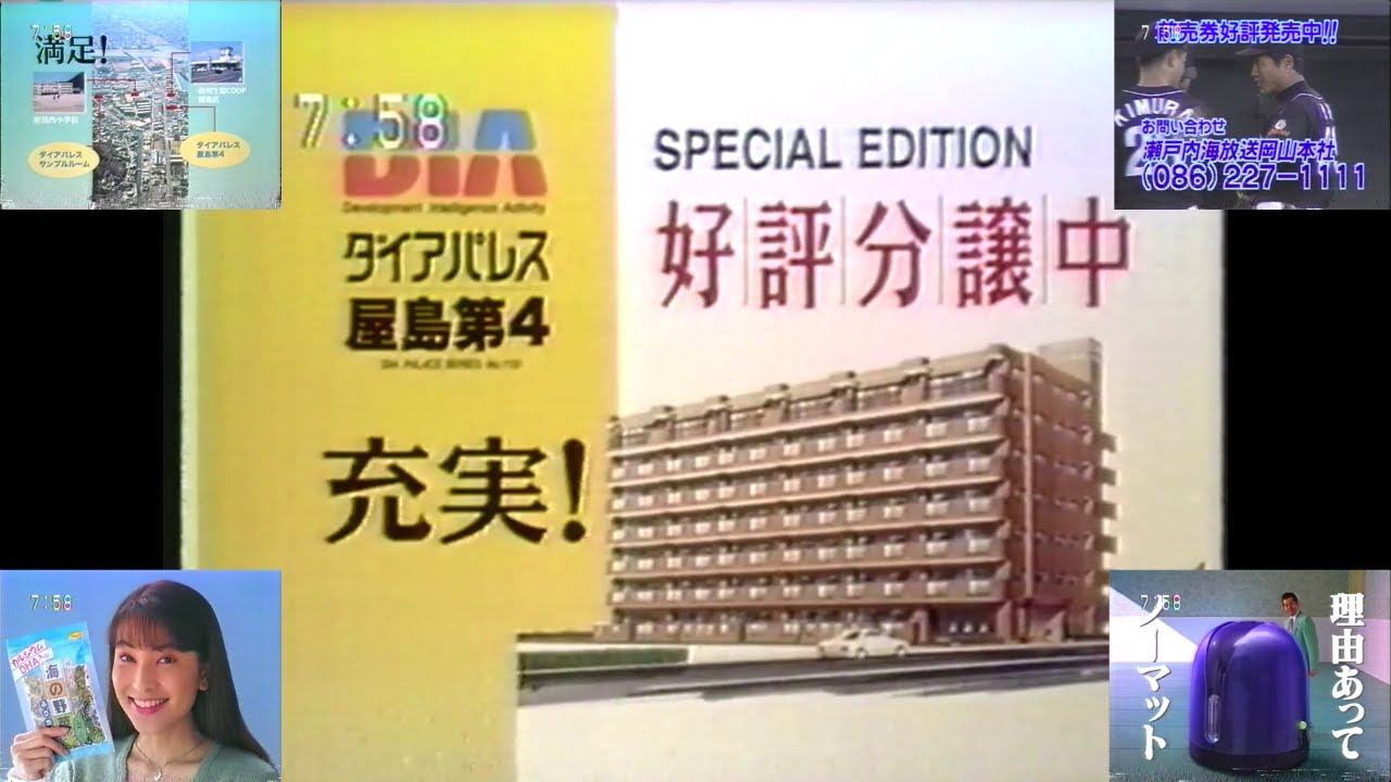 KSB土曜朝7時半台終了直後のローカルCM(1995.6.17 ダイアパレス屋島第4(声は浮田アナ)+鈴木杏樹 大森屋のふりかけ+古谷一行 アースノーマット+一瞬だけ朝8時前のレースガイドのOP)