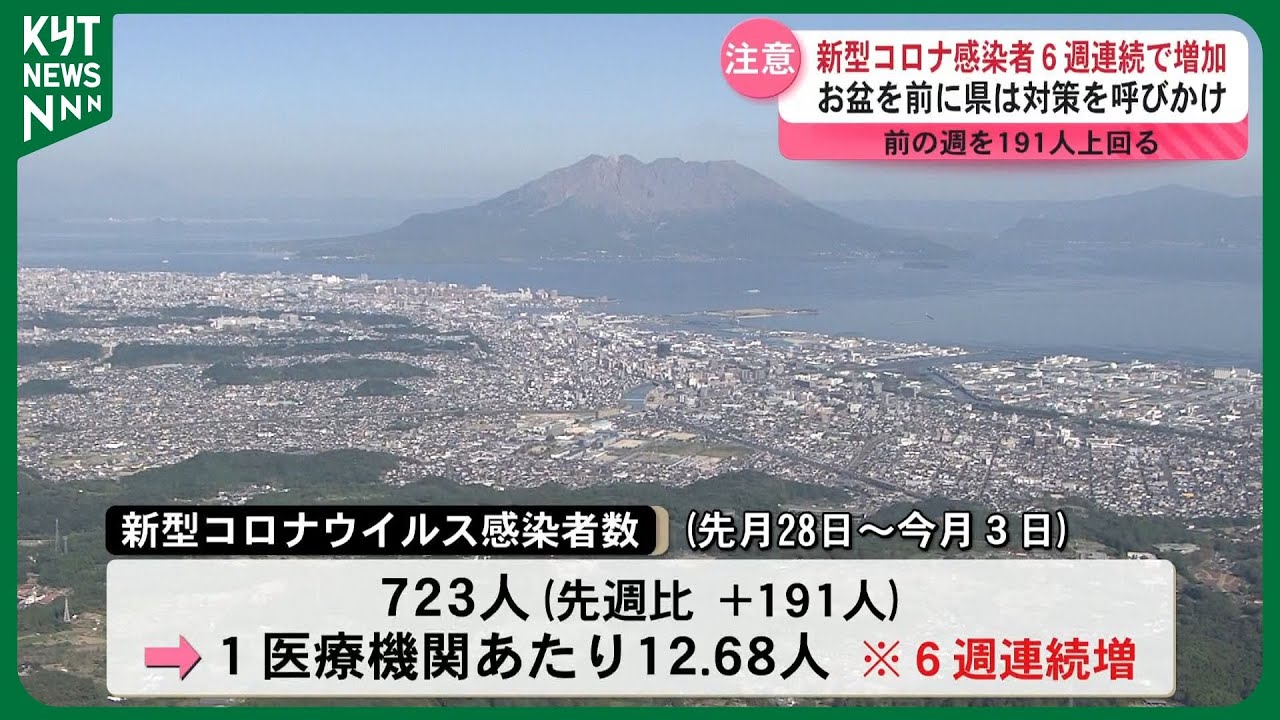 人の行き来が活発になるお盆を前に新型コロナウイルスの感染者が6週連続で増えています。県内の先週1週間の新型コロナウイルスの感染者数は723人で前の週を191人上回りました。