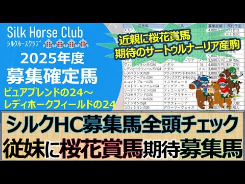 どうも父さんチャンネルの父さんです。 今回の動画はですね、またシルグホース クラブのですね、募集場のチェックという 形で見ていきたいと思います。今回はです ね、ピュアブレンドの24から レリフォークフィールドの24番見ていき たいと思います。 まずですね、簡単にですけれどもね、 2025年募集場の申し込みのご案内と いうことになっております。ま、一時募集 のところがね、面になってくるのでその辺 だけ見ていこうと思いますけれども、受付 期間が2025年7月の25日の金曜日 12時から8月の7日木曜日の17時5時 までとなっております。口数制限が各 募集場ともに1口あたり最大10口まで。 ただし、え、抽選枠で割り当てられる口数 は最大5口までとなります。等数制限は1 次募集ではお1人様当たり最大10等まで という形になっております。え、結果に 関しましては8月の17日の水曜日、お 昼頃の予定でマイページ内にて1時募集の お申し込みということで発表されるという ことになっております。もうね、募集が 始まりまして8月の7日までということで もうね言うてる間に締め切り来てしまう なっていうぐらいのタイミングなってます のでね、ま、早々に全チェックしながら ですね、どのに出資申し込みしようか決定 していきたいと思います。 ま、今回ですね、え、シルコスラブの全 募集は82頭ということになっております けれども、今回ですね、え、26番の ピュアブレンドの24からですね、30番 のレディフォークフィールドの24見て いきたいと思います。 まず1投目ですね。ピュアブレンドの24 になります。ニューイヤーズデイのボ場に なりますね。え、この馬ですけれども 予急車武急車対抗156cm強威が 174.0、簡易が21.0の馬体重が 458kmとなっております。え、このま ですね、ピュアブレンドの24の、え、 初めての子供ですね。1番目の子供になっ ております。お母さんね、プアブレンド 自身も、え、視力ホースクラブで募集され ておりまして、1500万円とですね、 かなり安い価格で募集されていたんです けれども、え、なんと3勝ということでね 、え、ダートで1800m2勝、芝m1勝 ということでね、え、安い馬なりには すごい実績を持っておりますけれども、え 、本場初めての子供でお母さんの繁殖牝馬 として能力は現状未定となっております。 ま、お父さんのね、ニューヤーズで 勝ち星あげているのもですね、ダート中止 ですね。ま、芝でも勝ちを開けてるんです けれども、ま、本場ですね、ま、血統的に 見てもね、ま、不要的に見てもですね、ま 、特にね、やっぱりすごい目立って るっていうところはね、なかなかちょ、 見つけにくいなっていうところがあります ので、ま、募集価格3500万ということ で、ま、かなり安価な募集とはいえですね 、ま、ハシビクトアルピサお母さんも芝も ダートも両方買ってるということで、ま、 知が重やずで一応潰しは効くのかなって いう感じはするんですけれども、ま、芝 メインなのかダートメインなのか、ま、 走ってみないと分からないし、ま、重賞活 ぐらいのレベルのが出てきてるのかって 言うと、ま、ちょっとそこら辺はね、え、 ニューヤーズデンクそこまでね、え、活躍 してる、ま、いないので、ま、ちょっと 重症というよりかはコツコツと稼いでね、 走って出走して稼ぐタイプの馬かなという 感じがしております。 [音楽] え、続いてマースの24になります。 サートゥルナーリアの、え、サク牝馬に なっております。え、林車で対抗 157.5、共有位が176、間位が 19.5に馬台中が445kmという形に なっております。ま、このもね、マースの これもね、ま、え、3角的には3投目の 3クという形になるのかなと思います。え 、お母さんマウスですけれども、アメリカ の芝のG1ですね。ロデオドライブ ステークスの勝ち馬ということで、ま、 ロデオドライブステークス勝ち馬、え、 日本にも繁殖品馬としてね、え、に入るさ れている馬がおりますけれどもね、ま、 今年同じくね、え、私で募集されており ます。え、ゴイン、え、ゴイングto ベガスのもですね、ノーザンファームで 反売りしておりまして、え、向こうはです ね、え、フランキでつけられたり、 イグイノックスつけられたりということで ね、ま、アメリカの芝のG1ガチ馬って いうところもノーザーファー、ま、かなり 、え、力を入れているんじゃないかなと 思います。ま、今回のね、このマースと いう間もですね、え、1番初めのね、え、 兄弟がサーグルオブジョイね、 コンスティューションサンクということで 、え、3で6000前募集されておりまし た。1個目のお姉ちゃんですね。え、 セレクトセで6200万円落された コントロールサンクとで、え、本場は サーナーリアサンクということで、ま、 このね、え、マースという馬に関しても ですね、いい社場が当てられているという ことなので、ま、かなり期待されているん じゃないかなと思います。街がね、 サールナーリアというところ。そしてね、 え、