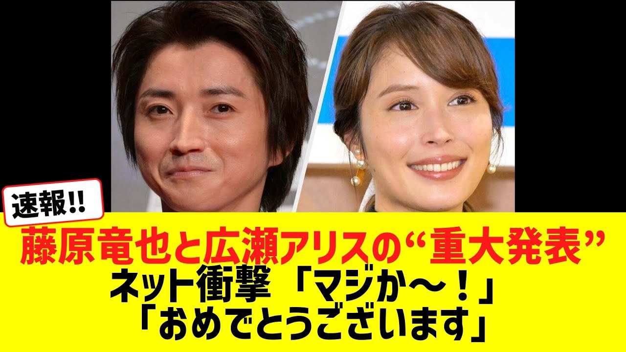藤原竜也と広瀬アリスの“重大発表”ネット衝撃「マジか〜!」「おめでとうございます」