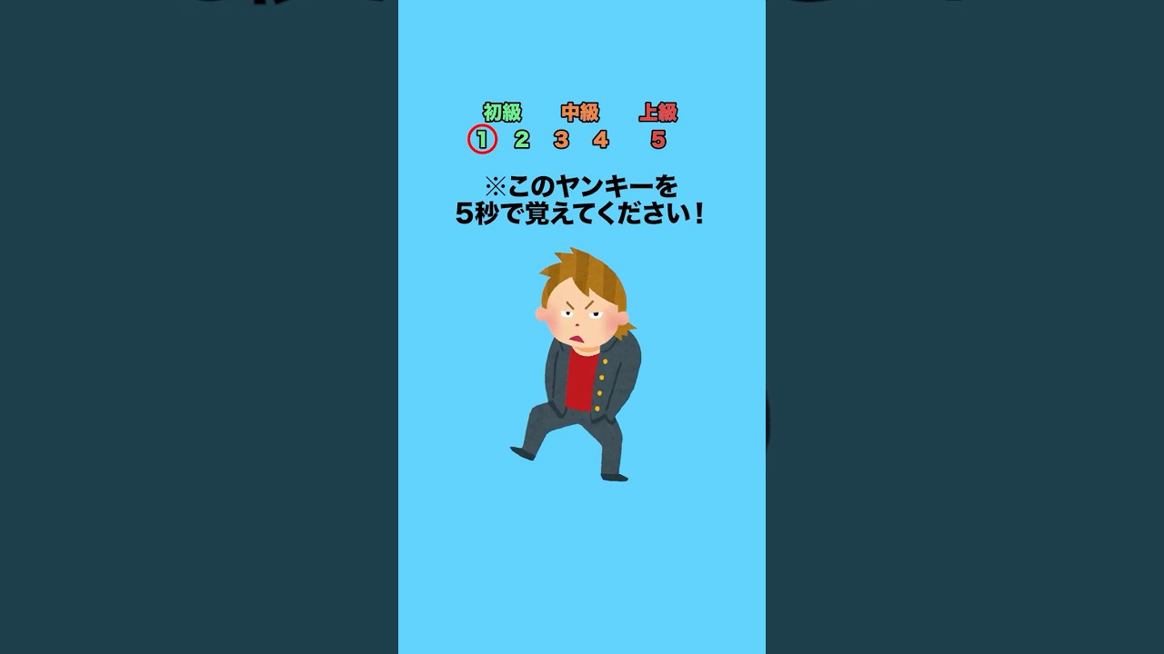 Share Facebook Twitter Pinterest LinkedIn 【計算】このヤンキーを5秒で覚えてください! #クイズ #ミニゲーム #暇つぶし 【企画・構成・編集】りょう 【音声】VOICEVOX:青山流星 【音声(5・4・3・2・1)】あみたろの声素材工房(https://amitaro.net/) 【イラスト】「いらすとや」「イラストAC」 【効果音】効果音ラボ 【音楽】「なぞなぞ」/作(編)曲 : Make a field Music celebrityクイズひまつぶしミニゲームりょう