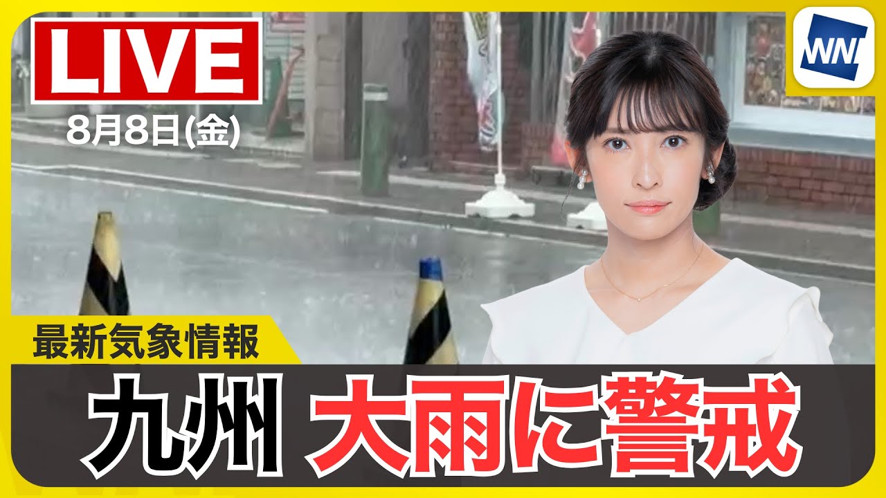 【ライブ】最新天気ニュース・地震情報 2025年8月8日(金)/九州は大雨災害に警戒を その他のエリアも雨具の用意を〈ウェザーニュースLiVEイブニング・山岸愛梨/宇野沢達也〉