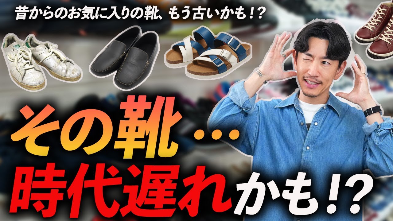 こんにちは。スタリストの親しです。今回 の動画なんですが、白と時代遅れに見えて しまう大人の靴5000というテーマでお 届けをしたいなと思っています。僕は普段 からですね、街でいろんな大人の男性を 観察してるんですが、その中でも最近よく 気になってみてるのが足元ですね。皆さん どんな靴を履いてるのかなと見てみると ですね、ま、結構人それぞれでやっぱ足元 がおしゃれな方は大体全身で見た時にも おしゃれである可能性が高くて一方で足元 のシューズ選びが失敗してる方は全体の バランスがいまいということも少なくない んですね。ファッションパーツで言うと靴 というのは足元にあるしそこまで目立た ないように感じるんですがその選び方次第 でおじさんぽく見えちゃうなっていう ところもあるので結構重要なパーツの1つ かなと思うんですね。今回は皆さんのです ね、靴箱を開けて該当するような靴がない かどうかを見ていただきたいんですが、街 でよく見るですね、こういったシューズ。 ちょっと難しいよというところで、具体的 に5個あげてみたいなと思います。ま、 これ僕のイメージとかではなくて、ずっと 街で観察しながら結構この靴多いなという 形で最新の情報でですね、お届けするもの なので、ま、是非皆さんもですね、今回の 動画1つを参考しながら靴の断捨離だとか 入れ替えの1つのヒントにしていただき たいなと思います。もちろんNGの靴を あげるだけでは建設的ではないので しっかりとこういった靴に変えてあげると よりいいですよという形でオッケー例も 出していきたいなと思いますので1つの 参考にしていただければなと思っています 。こちらのチャンネルでは大人男性に向け てメンズファッションの今ですね、 なるべく分かりやすく解説しますので よかったらチャンネル登録の方もよろしく お願いします。それでは早速行って ましょう。 [音楽] はい。ということで、ここからですね、 白島時代遅れに見えがちな大人の靴を皆 さんにですね、5点ご紹介したいなと思っ てんですが、まず1点目はですね、 ちょっとお伝えしづらい部分もあるんです が、思い切って出してしまいたいなと思い ます。今回ピックアップしたのはこちら アディダスのスタンスミスですね。その中 でも最もベーシックな大体1万円台前半で 売られていて、単の部分のカラーだとかの 部分のパーツですね。これがグリーンの方 ですね。最もオーソドックスな スタンスミスはちょっと時代奥に見えがち かなと思います。これなぜ言いづらかった のかと言いますと、僕のチャンネル6年 ぐらい運営しているんですが、その中で 結構初期の段階ではスタンスミスをご紹介 することが多かったからなんですね。 メンツのスニーカーの中でもスタンスミス というのは白レザースニーカーでデザイン 的にもそんなにスポーティンに寄りすぎて なくてかなり使いやすかったので結構お 勧めすることが多かったんですね。ただ 時代を減ることで白系のスニーカーの選択 肢も増えてきてますし、定番的なスタンス 密を履いてるとちょっとこう古いなって 感じるところが出てきたので、今回は あえて1つ目にピックアップさせて いただきました。スタンスミスデザイン的 にはすごく使いやすいんですが、最近の モデルはですね、環境面を配慮しながら 本側から合費に変更になってるんですね。 これもちょっと個人的にはや残念だなと 思ってるポイントなんですね。もちろん 環境面では素晴らしい配慮だと思うんです が、質感で言うとやっぱりレアルレザーの 方が上品で軽年変化も楽しめたりしますし 、大人が履く分にはこういったものが はまりやすいかなと思うんですね。なので 個人的には現行で売っている1万台前半の スタンスミスグリーンのアクセントの入っ てるものはちょっと難しいかなと思うん ですね。じゃあスタンスミスが完全にNG かと言うとそんなことはなくて例えば今回 持ってきたようなこちらのモデルですね。 スタンスミスの中でもこういった スタンスミスラックスというモデルがあり まして、通常の合費のバージョンだと納得 いかないとか、もうちょっとレザーの上品 さを楽しみたいという方が結構 いらっしゃったので、ま、そういった ところ反映した本側バージョンも実は売ら れているんですね。しかもセレクト ショップの別中バージョンとかも出てたり するので、こういったモデルであれば僕は 全く問題なくお勧めできるかなと思います 。スタンスミスラックスはやっぱりこう 上品な仕上がりになってまして、アッパー のレザーの雰囲気もすごくいいんですが、 それ以外のパーツですよね。かの部分 グリーンではなくて、こちらはライト グレーのスエードパーツになってますし、 上品で大人っぽいアプローチになってるん ですね。しかもタの部分のスタンスミス おじさんですね。この顔もですね、 グリーンで色付けされてると結構目立つん ですが、こちらはホワイ