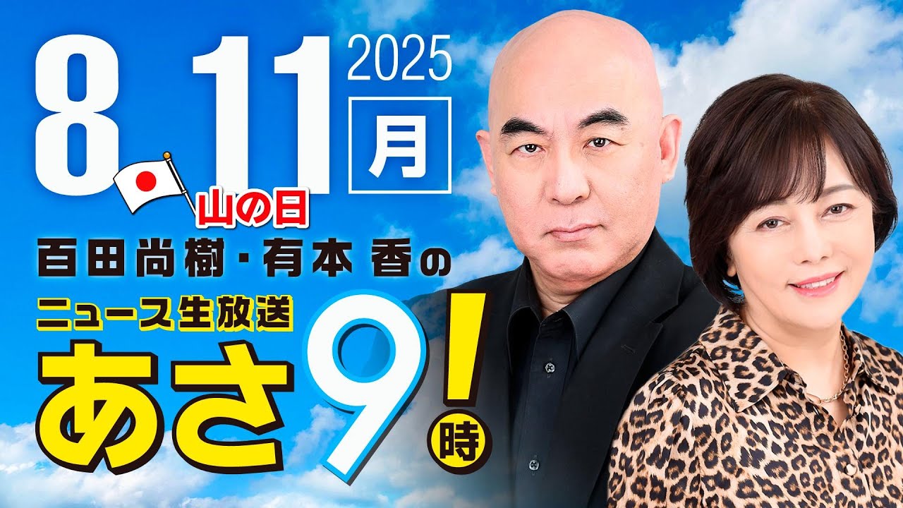 [音楽] おはようございます。日本朝9時です。令 和7年8月11日月曜日。 え、今日は海の日です。え、ニュース生放送朝、今朝は 9 時スタートです。え、今朝はですね、ちょっと久しぶりになると思うんですよね。こういう格好でやるのは。え、おはようございます。 はい。おはよう皆さんおはようございます。 ちょっと何してんですか?ちょっと 水素吸てますね。 あ、そうですか。 はい。 あの、なんか百太さん、ここで誤解の内容に言っときますけれども、百太さんは、え、その癌に関する治療は、あの、普通の治療もしてますからね。あの、がをなんていうか、現代学で治療してないわけでは決してありませんのでね。 これ、癌と関係ない。これ 関係ないですね。だんだろ健康法としてやってるだけなんですけれども。 はい。 お、おはようございます。やったさん。 はい。 先週はお疲れ様でした。がキかどうかればないけどね。 広島長崎 はい。 え、6日の広島、そして9 日の長崎への、ま、ご出張とそれから、え、ま、あの、原爆の記念式店ですね。ま、それに出席ということではい。 お疲れ様でした。 いえいえ。あの、え、中崎はね、あの、あ有保さんも来ていただきました。ありがとうござい。 いいえ。ま、あの、貴重、貴重なというか、いい経験になったということでしょうかね。 やはりあそこの場でこうその日を振りあのま振り返るっていうとかしですけどこう追する忍ぶっていうのはま、それそうのこう雰囲気ありますよね。 うん。ま、色々考えることありましたけどね。 ええ、 それで80年というのはね。 うん。 まあ短いようでものすごくやっぱり長い時間ですよね。 そうですね。はい。あの、ちなみに80 年って言いますのはね、 ええ、 え、メイディシンが起こりましたよね、昔。 はい。はい。昔ね。はい。 で、それから80年後っていうのはあの、 戦後の 終戦直後ですね。 いや、直後じゃない。もう終戦から 3年経てる時代なんですよ。 ああ、 1948 年なんですね。 うん。ふ。 はい。つまりね、え、昭和 23年。はい。 今日は23年の時点で80 年前と言いますと明治 名治心だったんですね。うん。 え、その間にね、日本はまあ、第 2世界大戦、第1 次世界大戦、それから日戦争、日戦争 うん。うん。 え、すごい うん。 いんなもが、 多くのものをね、経験し乗り越えてきたわけですよね。 80年間で。 はい。ま、80 年ってそれぐらいの時間でね。 で、 うん。 はっきり言うてね、もう歴史なんですよ、も。 ま、そうですね。歴史ですね。え、 え、ですから、ま、確かにね、その、ま、現でなく、原爆でなくなった方たちをですね、ま、慰例して、そして平和を記念するという、ま、非常に尊い意識ではありますが、 [音楽] そうですね。こられますけども、ま、若干こう儀式化してるっていう感じ。 あ、それはそうですよね。うん。 うん。 ま、毎年の、ま、あの、つから行われてるのかどうか、それちょっと知らないんですけど、ま、お、 ま、70 回以上は行われてるんでしょうかね。 うん。うん。 だから、ま、もちろん年その被爆者の方はなくなっているんですけど、 ええ、 ま、ある意味そのなんやろ、本当その綺麗化してるという、ま、そこまでは言い、そこまでは言いていいかもしれませんけど、ま、若干そういうとこありましたね。 うん。そうですね。 あの、もちろんね、被爆者の方で、え、今もあの、顕在顕在っていう言い方がいいのかどうか分かりませんけど、あの、 ま、生きておられる方がいらっしゃって、 え、実際にお言葉を述べておられましたけどね。 でもやはりもう90代ですよね。 うん。 うん。 で、私も長崎で思ったんですけどね、やっぱりくいつか考えさせられる場面があって、その子供たちにあの、いろんなこう平和への近いみたいなことをこうしてもらってるわけなんですよね。 で、それはそれでいいんですけれども、それが百太さんおっしゃるようにまさにこう、ま、儀式化してるという側面を見せてしまうのかなというのと、それからもう 1 つですね、これはあの梅原さんは仕切りと言ってたし、私も気になったんですけど、私たちはあの関係者あの人たちがいる後ろの方の比較的テントの後ろの方に座ってたんですよと、よりよく聞こえるんですけど、木頭の時間でもね、あの、外でわあわやってる活動可 の うん。 声が入ってくるんですよね。 なるほど。 うん。あれはね、やはりあの、ま、表現の自由とか色々言うことあるかもしれませんけど、 木頭の時間はやっぱりやめてもらうように もうちょっと距離を 置いてね、 うん。 規制をしてですよ。一定の距離以上にはやっぱり平和機念行為に近づけないっていう風なことをすべきじゃないかなと思いますけどね。 ま、それとそうですね。そ、 のための木頭ですからね。 うん。 あの、木頭の時間ぐらいはいわゆる活動化大しくできへんのかね。 ま、そういうことですよね。ただ、ま、あの方たちに自発的な何かを促し