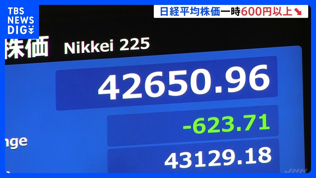日経平均株価が6営業日ぶり反落 午前の終値は4万2726円で1%強値下がり きのうまで2日連続過去最高値|TBS NEWS DIG