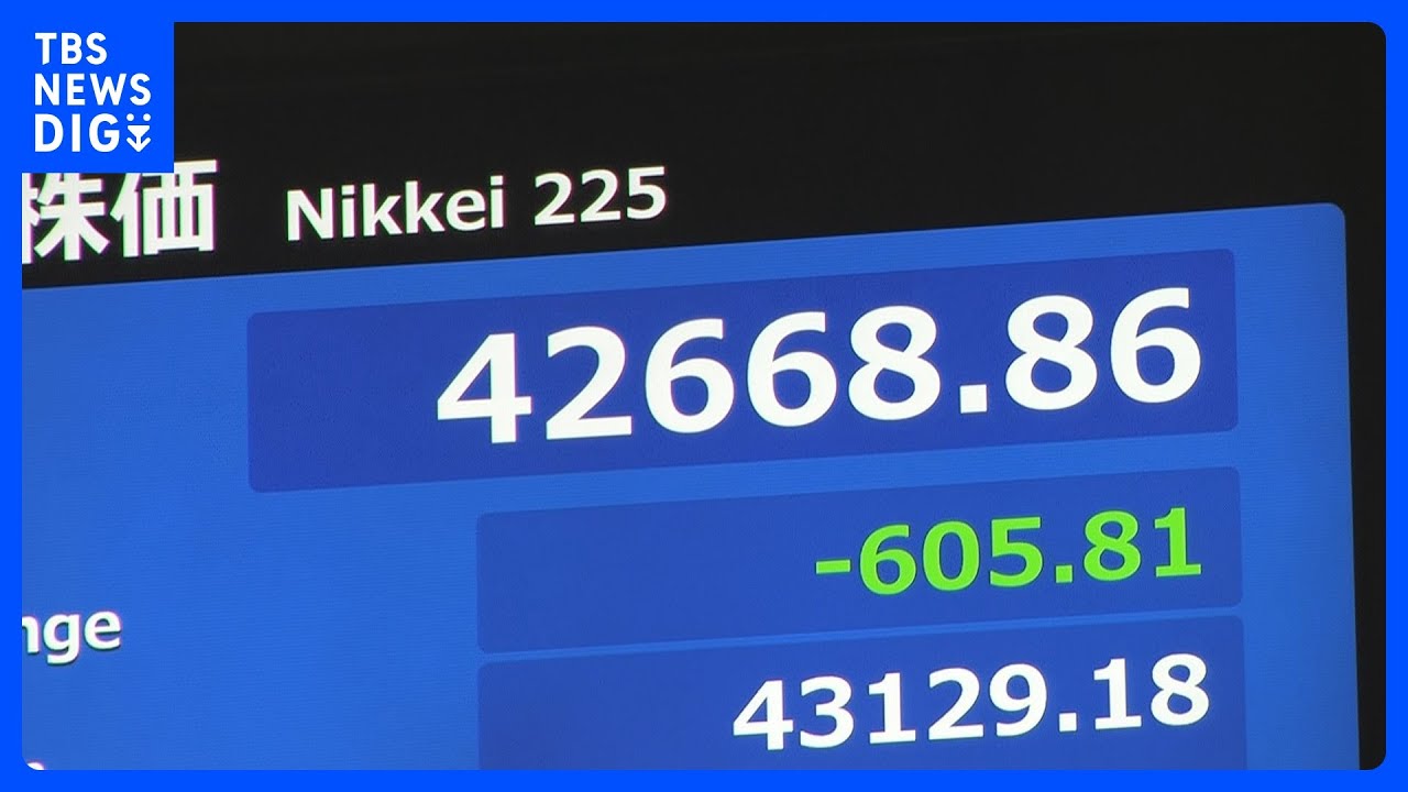 日経平均株価が一時600円以上下落 きのう過去最高値で市場に過熱感懸念 円高・ドル安進行も重しに|TBS NEWS DIG