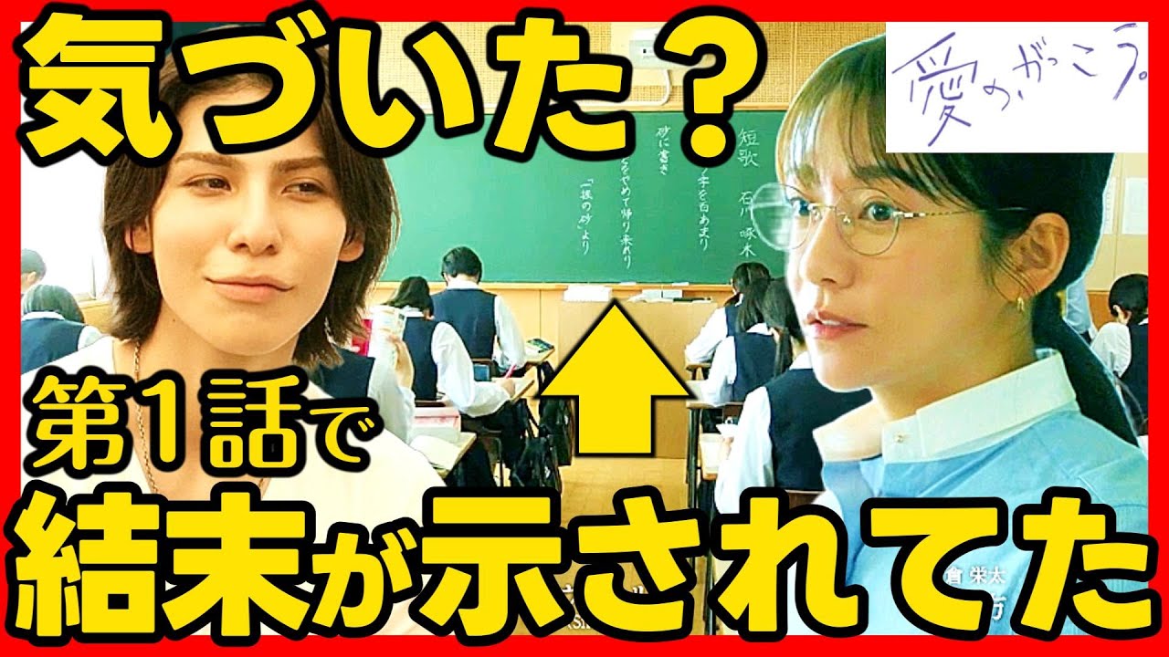 第1話の冒頭でこのドラマの結末が示され ていたのではないかという話をさせて いただきます。まなみとか香の2人が最後 にどうなってしまうのか確認していき ましょう。たとさのシーンについても 深掘りしていきます。僕の妄想をたくさん 含んだ話になりますがよろしければお 付き合いください。フジテレビのドラマ愛 の学校ドラマ考察。この動画のコメント欄 に感想を書き込んでみんなで気持ちを共有 しましょう。このドラマについて過去に 公開した動画をコメント欄にある再生 リストから見ることができます。ドラマ 放送直後に考察ライブ配信を開催してい ます。是非次回はリアルタイムでドラマ 視聴後、僕のチャンネルに遊びに来て くださいね。 今回の放送でかなり印象的だったのはここ ですよね。さがたけち千に心を奪われる ところ。たけちはいいやつだとカおルが 言ってましたからね。このシたけちが スイカ食べましょうといったところについ て RJRJさんのコメントです。たけちが スイカが汗をかいてたことをスイカが泣き ますと表現してて素敵だと思いました。 そう、この表現素敵でしたよね。 とりあえず食べないとスイカが泣きます。 そしてすごく印象的に映されていたのが ラムネを開けるシーンです。たけちが ラムネの線をしてるB玉を押し込むところ がなぜかアップになっていたんですね。 はバスっと音を立ててラムネの線を開ける とそれをさに渡していました。バスと音を 立ててB玉を押し込むところ。これは おそらくたけ千がさの心に何かを打ち込ん だ瞬間だったんじゃないかと思いました。 さの心は打ち抜かれたんですよね。 でもよく考えたらさはた千と会った瞬間に 自己PRと思うような自己紹介をしてい ました。さと申します。30歳東京出身 です。なんかすでにこの時ちょっとた町の こといいなって思ってたんじゃないか そんな気がしてしまいました。 という風に結構映像やちょっとした やり取りの中に登場人物の心情を重ねて いるのかなというところがあるんですよね 。 それで注目したいのがかなり前に戻って第 1話の冒頭付近にあったこのシーンです。 まなみが授業をしてるんですが、みんな まなの言うことはちゃんと聞いていないが 表されているシーンでした。このシーンに も深い意味が込められていそうです。 ユニコーンさんです。1話でまなみが教え ていた石川卓木の単価に大という字を 100余りかきがあって高森大雅に大の字 入ってるのでそのうちカオルの名前 いっぱい書くのかなと勝手に妄想してます 。ありがとうございます。 この時黒板に書かれていたのは石川卓木の 歌でした。台という字を100余り砂に 描き死ぬことをやめて帰りきたレイリ。 これは石川卓木の歌習一悪の砂にある歌で 心に重いものを抱えた卓木が海辺の砂浜で 大という字を100回以上書き続けその 行為によって死のうという気持ちが柔らぎ 生きる気力を取り戻したという内容なんだ そうです。 まず大という字を100回以上書くという ところ。カオルの名前は高森大雅ですよね 。だからまずはカオルがとにかく自分の 名前を練習するということを表していそう ですよね。そうすることでホストの世界に しか自分の道はないと思っていたカルが別 の道を見つける、探そうと思えるように なるということが表されているのではない かと思いました。 という友字を100余り砂にかき、死ぬ ことをやめて帰りきれり。本当の自分を 殺してホストとして生きることをやめて 本来の道へ帰ってくる。 そしてもしかしたらまなみもまた高森 タイガーの名前大という字を思いを込めて 何度も書くということがあるのかもしれ ないですね。これはあんまり良くない想像 になってしまうかもしれないんですが、 ホスト殺人事件の話が何度も出てますよね 。カオルは言っていました。たえ殺されて も1回はナンバーワンになる。この言葉気 になりますよね。 ホストとして登り詰めたいという思いが あるカオルならホストとしてナンバーワン になるかなとも思うんですが、でももしか したらですが特定の人学みのナンバーワン になりたいと思う気持ちも出てきそうです よね。たった1人のナンバーワンになり たい。たえ殺されてもという意味で捉える ともしかしたら学みを守ってカオルがと いうことも想像してしまいますね。 もしそんなことが起こってしまったら、 まなみはカルに突き取って無事回復する ことを願うはずですよね。台という字を 100余り砂にかき、死ぬことをやめて 帰りきたり。かなり変わった方向につげて しまいますが、ま、カオルの回復を願い、 カオルの横で高森大雅の名前を何度も書く 。また一緒に勉強できることを願って、 それを何度も何度も繰り返していった先で 、 カオルは死ぬことをやめて戻ってきて くれるかもしれません。もしかしたら自分 の人生なんてという気持ちもあり、自分 より価値があると感じる学みのため身を 投げ出してしまうのかもしれず学みの ナン