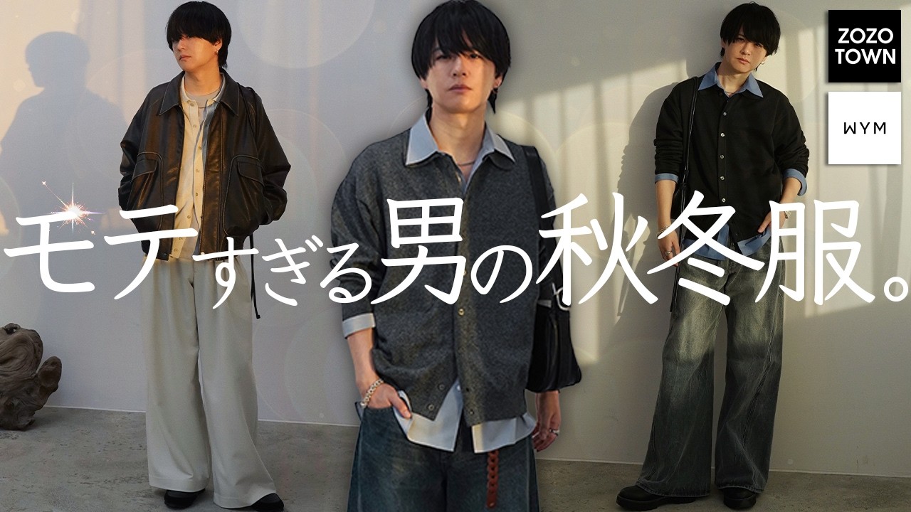 [音楽] どうも皆さんこんにちは。でございます。 本日はですね、今年2025年秋冬にする と絶対に間違いないコーディネートを めちゃくちゃご紹介していきたいと思い ます。はい。そういうのもそのシーズン、 そのシーズンでどういうコーディネートが 今年らしいかなんていう話ってさ、毎年 やっぱ変わってくるんですね。なので、 今シーズンはどんなことを意識しながら コーディネートを組むとよりかっこよく なれるのかを皆さんに解説していきたいと 思います。早速行ってみよう。 [音楽] バ [音楽] ということで本日はですね、2025年の 秋冬にどういうアイテム使えばどういう 購入できるのか、そしてなぜそういう購入 になっているのかを皆さんに解説していき たいと思います。そして今日ね、どちらか と言うとこちらのコーディネートたちや さらにはこちらのコーディネートたち そしてこちらのコーディネートたちという ようにもうすでにたくさんコーディネート 組んできているんですね。さらには先日 こちらの動画でコーディネートランキング 、どのコーディネートが好きなのかなどを 発表させていただきました。で、その コーディネートの方法までも僕なりに解説 させていただきました。ですので、もう すでに組んだコン人以外の組み合わせをし た上でコツだったりとかポイントを皆さん に解説していきたいと思います。はい、と いうことでまず1コデ目なんですがこちら のコーディネートね、本当ね、めっちゃ やりたかったんよ。今シーズンアイテムを 僕自身もね、手かけて僕も1人の人間なん で、こういろんなものから影響を受けて 踏みたいと考えている中でラインナップの 現時のこのスナップの撮影の時にはでき なかったんですけど、このコーディネート ね、さっきのように上にレザーブルゾンを 着用するコーディネートもいいんですが、 ただブルーシャツを45年前とか市場にね 、僕自身も着用してたんですが、ブルー シャツトレンドが復活しで、なおかつこの シャツりのニットカーディガンが めちゃくちゃ人気でして、僕自身も絶対に 着ていきたいシーズンでして、で、それら 2つを組み合わせて、ともちょっとまくっ た状態でお気に入りのブレスレットとかを 合わせちゃったりなんかしちゃってたら タラっとネックを統 ずでブルーとチャコールのニットのこの 掛け合わせにさらっとレザー調のバッグを 取り入れ、そこに合わせるボトムはしっ しっかりとワインドなデニムを合わせると いうコーディネート。めちゃめちゃ良く ないですか?基本僕はスナップのたくさん コート取る時とかは同じアイテムでもこの 組み合わせだとよりかっこよく見えるよ なんていう推奨コデはですね、毎回撮影し てるんですが、前回の撮影の時にね、この ブルーのシャツを使ったコイント1枚も 取れなかった。こういうブルーのシャツを 8月のね、のリースのアイテムと 書き合わせとめちゃかっこいいので是非ね 、参考にしてみてください。で、ポイント は中のブルーのシャツのここも開けちゃ うっていう反射だね。ここも閉じちゃうと ちょっと広がりがないというか、 レイヤード感がより美しくならないので下 をこう2つ開けて長袖で伸ばしててもいい んだけど、せっかくであれば袖をまくっ ちゃった方がアクセサリーとかの相性も いいかなというところでございます。で、 中にTシャツとか着るのもいいんですけど 、中にタンクトップもしく何も着ずにこの ニットシャツカーディガンの襟りをまいで 下からグリーンとブルーのシャツを出して 鎖骨トレンドも絡めてコイント組むとお すすめです。で、そこにこんな感じで アイウェをね、足してあげるとまた ちょっとね、違った雰囲気のインテリ チックなね、コニト組めるし、さらには こうユニクロのね、横長サングラス、 キャットアイのサングラスをかけてみたん だけども、こういうちょっと現代っぽい 購入組むのもいいと思いますし、アイベア の色味るとこんな感じです。ていう合わせ 方はプチプライツでできてしまうわけです よ。で、もちろんこのブルーシャツなくて も多分ね、近いポイントに合わせたと思う んですけど、こんな感じで合わせてるん ですが、ブルーのシャツを1枚挟んでみる という提案でございました。で、その上 からはい。こんな感じでね、ブルーシャツ の清潔感と差し色と似シャツカーディガン の温度挑戦も可能で清潔感もトレンド感も あって可愛らしい感じもあって、それで いって部活な男らしいレザーブルゾーンを 上から羽織ったコーディネートはね、最高 よね。是非真似ていただけたらなという風 に思います。続いてのコーディネートが こちら。はい。近いコーディネートで あまりにもこのシャツカーデレザー ブルゾンのアーティフィシャルグレイン フライトブルゾンそして新作のバゲー デニムの組み合わせがめちゃくちゃ好きな のでもう1コーで組んでみました。で、 ここでやっぱり注意しなきゃい