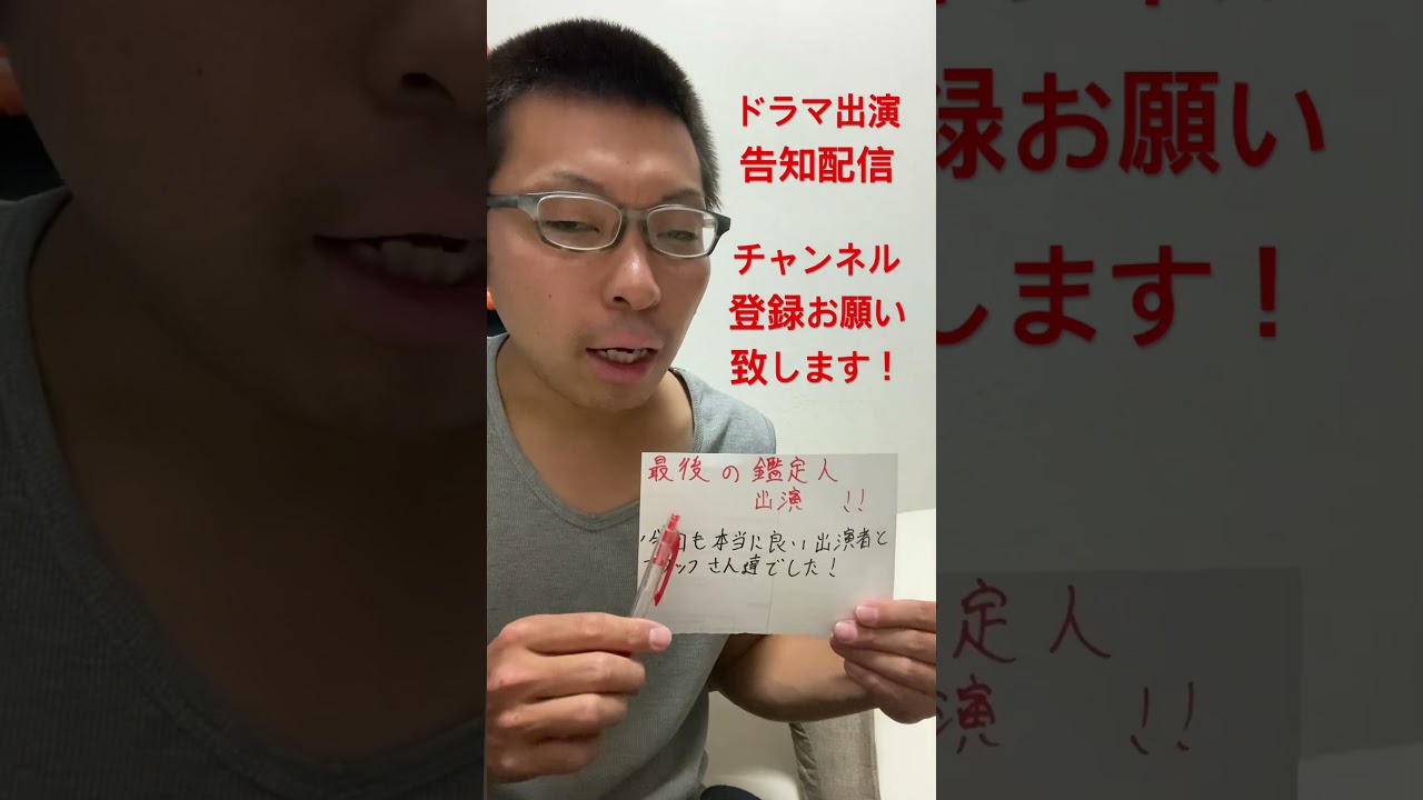 はい、皆さん中期です。今回のドラマ出演 告知はこちら。最後の観点第6話警官役 出演であります。私は今期フジテレビで 放送されている最後の鑑定人第6話に警官 役で戦させていただいておりました。今回 も本当に良い視演者とスタッフさんたちの 現場でありました。私の登場シーンは物語 冒頭の山奥で発骨が発見されるシーンの 景観役であります。見逃した方々は是非 Tバで見てください。それでは皆さんまた 次回そしてこのYouTubeの チャンネル登録も皆さん是非お願いします 。それでは皆さんまた次回ぜ非見て ください。バで