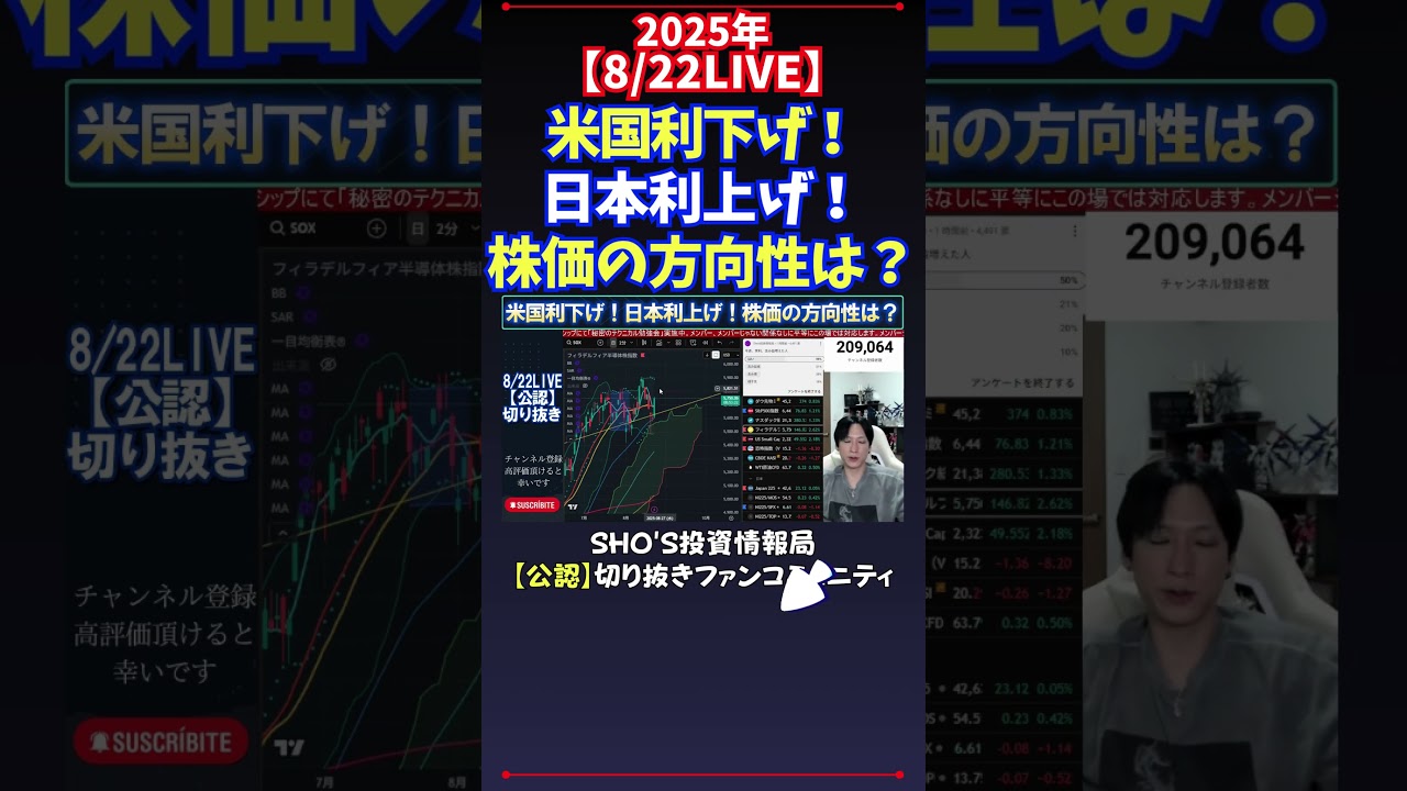 Share Facebook Twitter Pinterest LinkedIn 【8/22LIVE】米国利下げ!日本利上げ!株価の方向性は? #日経平均株価 #投資 investmentSho's投資情報局日経平均株価株式投資