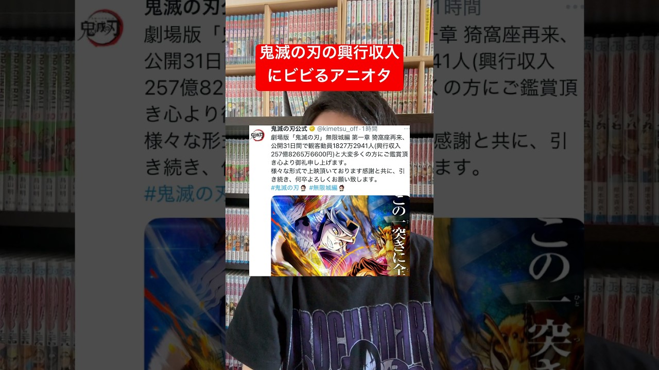 鬼滅の刃の興行収入に怖くなるアニオタ #shorts #鬼滅の刃 え、鬼滅の刃無限上編257億円突破。 無限列車編が233億円やったから 24億円リードしてんの。お盆休みがすご すぎたな。どれだけ失速しようが 400億円絶対こすな。千ひの絶対抜かれ へんやろうなっていう記録をさ、煉獄さん が20年ぶりぐらいに更新してこの 400億円は向こう50年は絶対抜かれ へんと思ってたけどたった5年でこんな あっさり抜かれてまう。で、しかもそれを 抜いたのはその鬼滅の続編っていう本当に あった怖い movieアニメ映画映画興行収入漫画無限城興行収入鬼滅の刃
