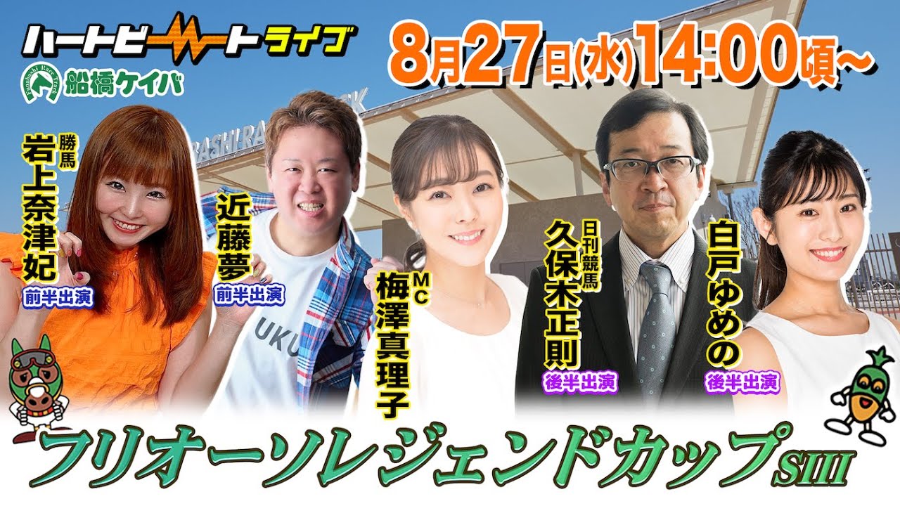 【船橋競馬】ハートビートライブ #211【前半出演 進行:梅澤真理子/ゲスト:近藤夢/解説:岩上奈津妃(勝馬)】【後半出演 進行:梅澤真理子/ゲスト:白戸ゆめの/解説:久保木正則(日刊競馬)】